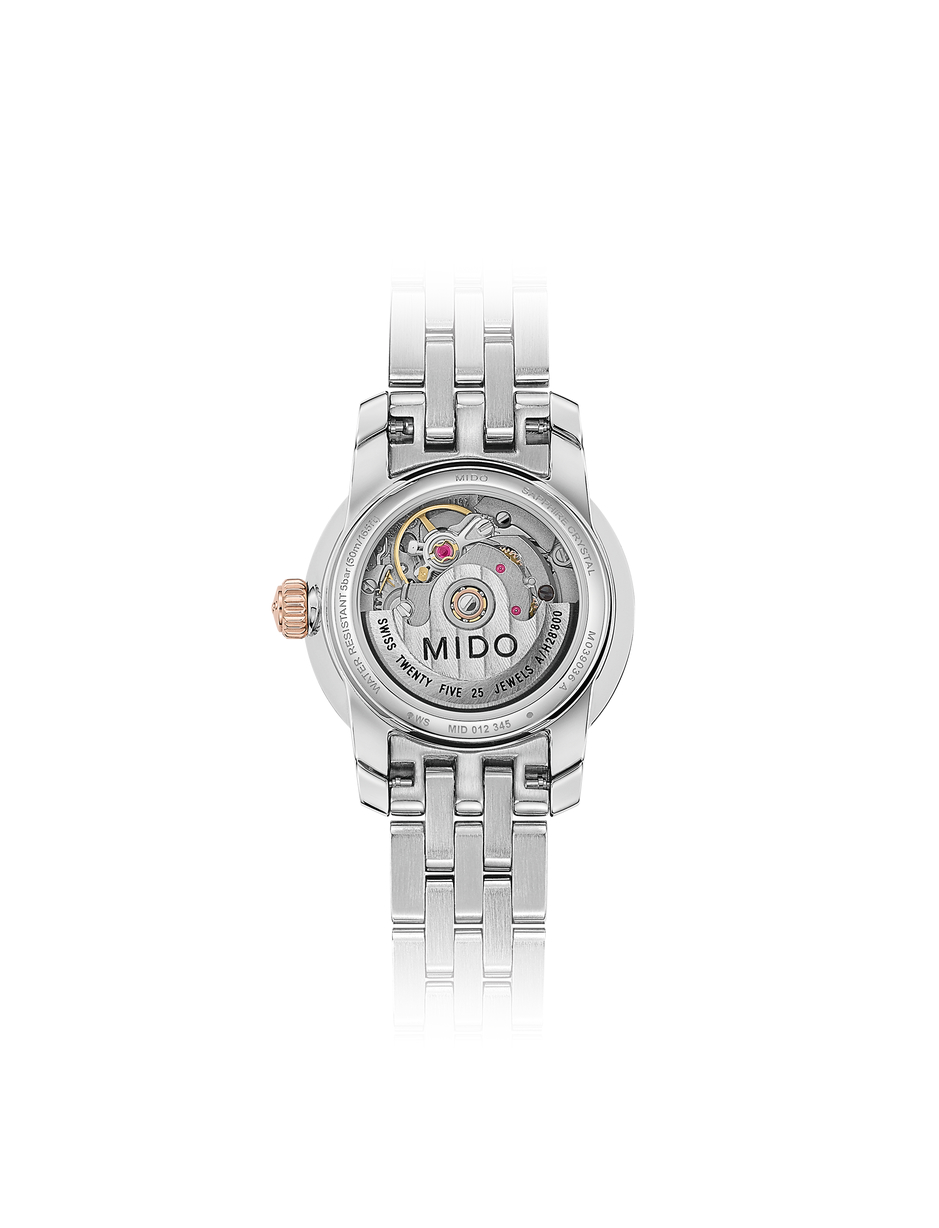 It may be small, but the Baroncelli Lady Twenty Five Swiss watch knows how to be the centre of attention. Everything is harmoniously incorporated inside the polished steel case, its 25mm in diameter presenting graceful and balanced lines. Timelessly chic, this classic timepiece refuses to be confined by trends and is brought to life by an automatic movement enhanced with a Nivachron™ balance-spring.