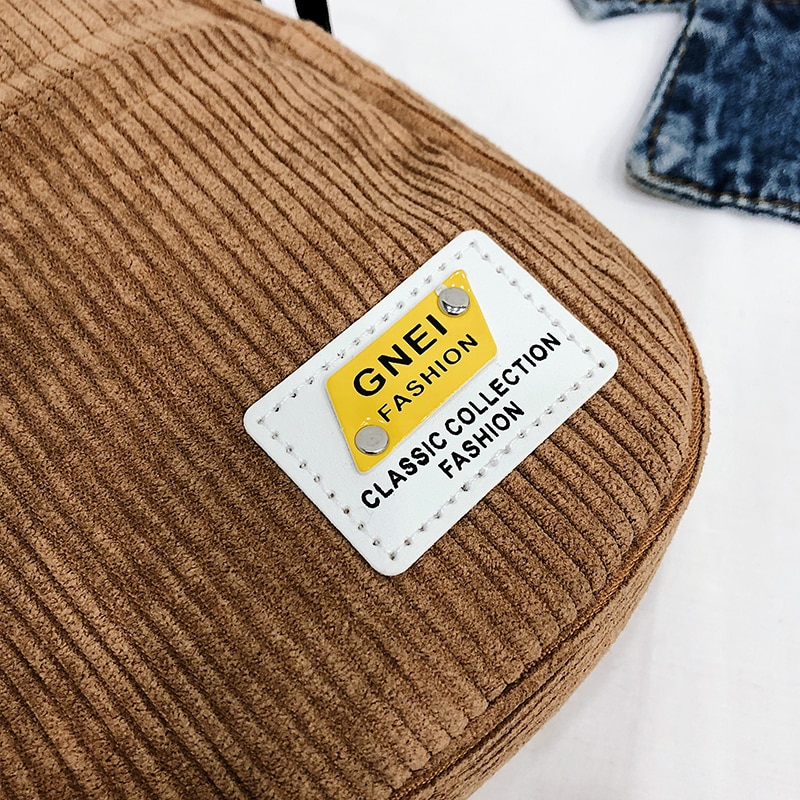 Material: CorduroyLining: PolyesterSize: 12cm(Top Length), 13cm(Bottom Length), 16cm(Height), 6cm(Width) very smallShouder Strap: 120cm