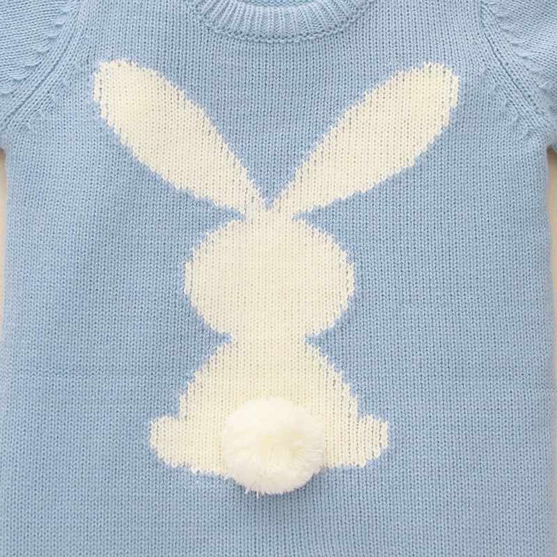Baby Rompers Cute Rabbit Pom Pom Newborn Toddler Jumpsuit Outfit Long Sleeve Autumn Infant Girl Boy Winter Clothing Knitted Warm
