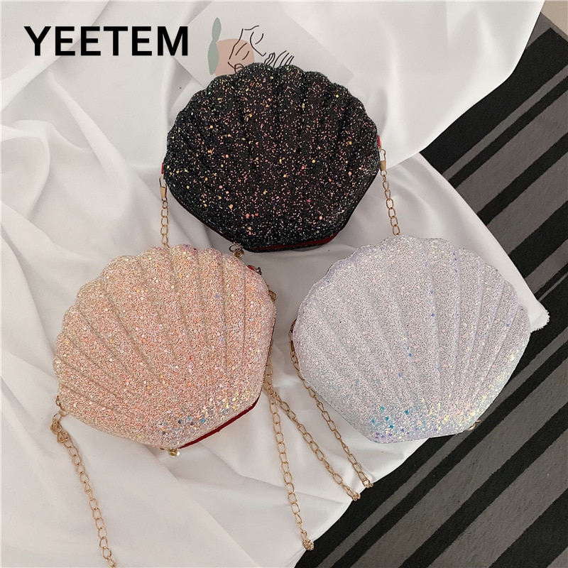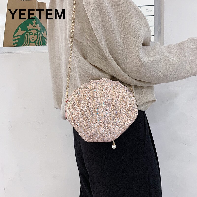 Fashion Chain Pearl Sequin Banquet Party Shiny Mini Shell Bag Lady Messenger Bag Wallet Purses And Handbags Luxury Designer