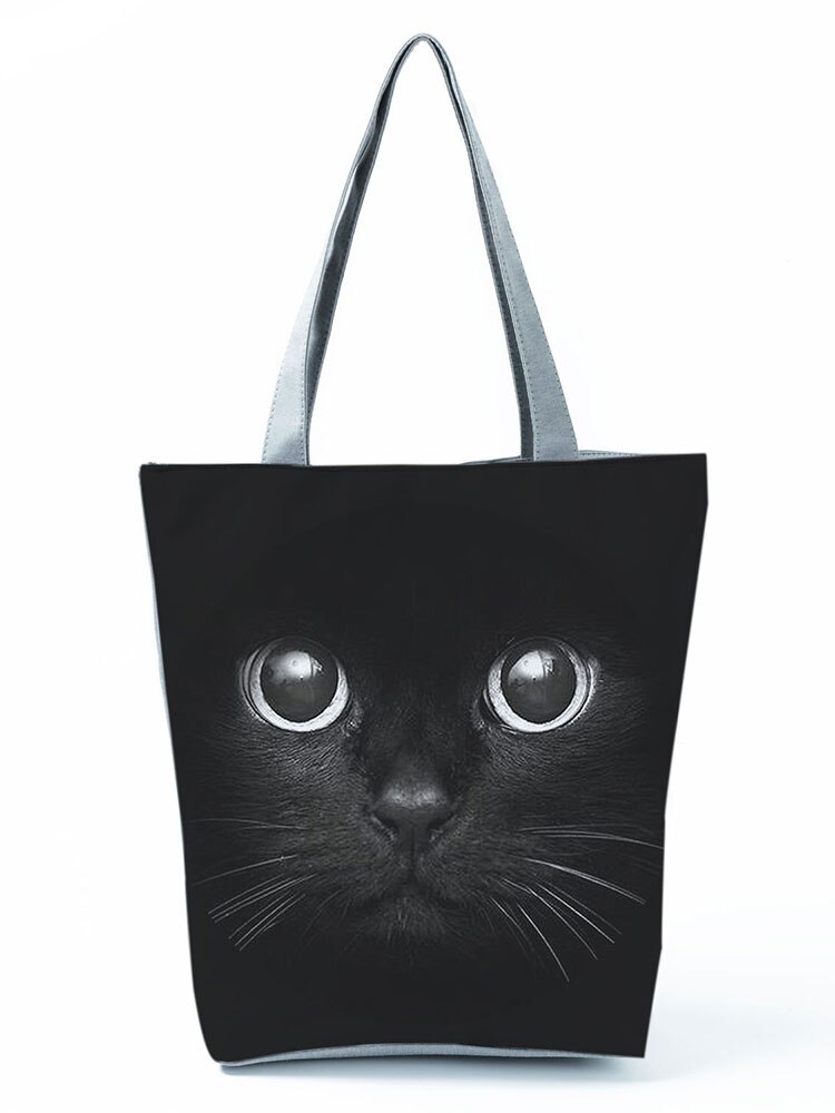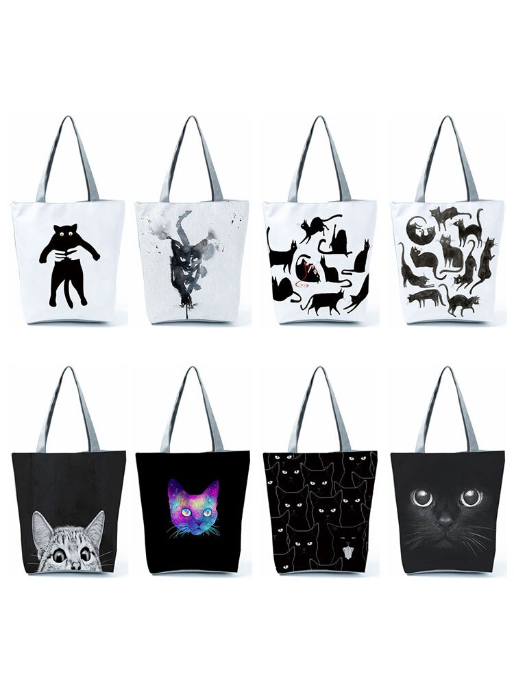 High Capacity Animal Design Bags Women Bag Black Cat Print Shopper Bag Handbag Office Reusable Casual Shoulder Bags Dropshipping