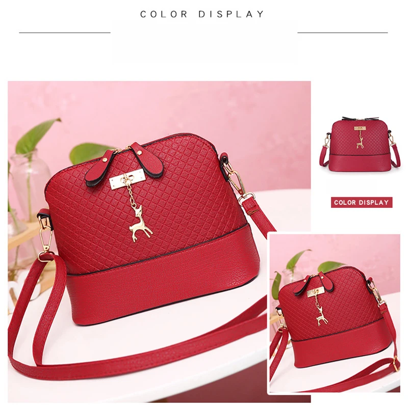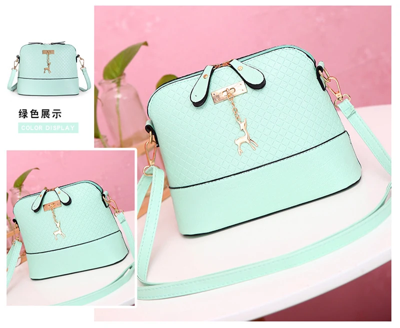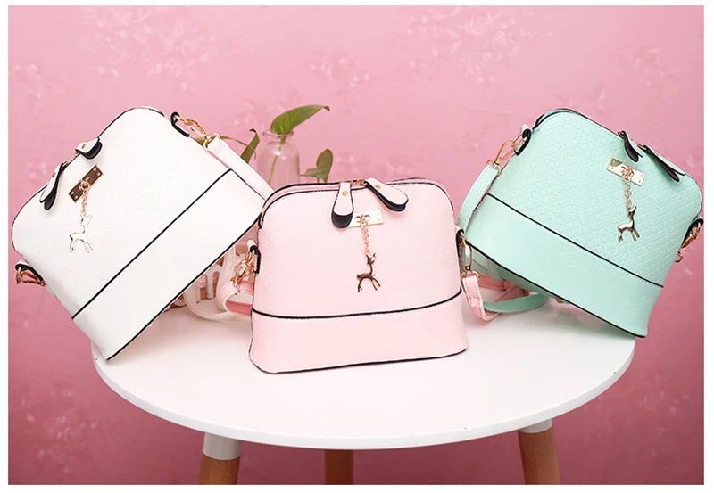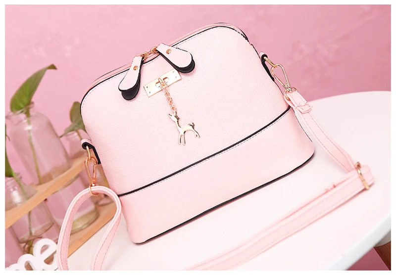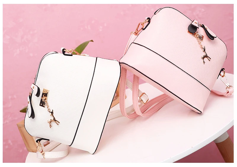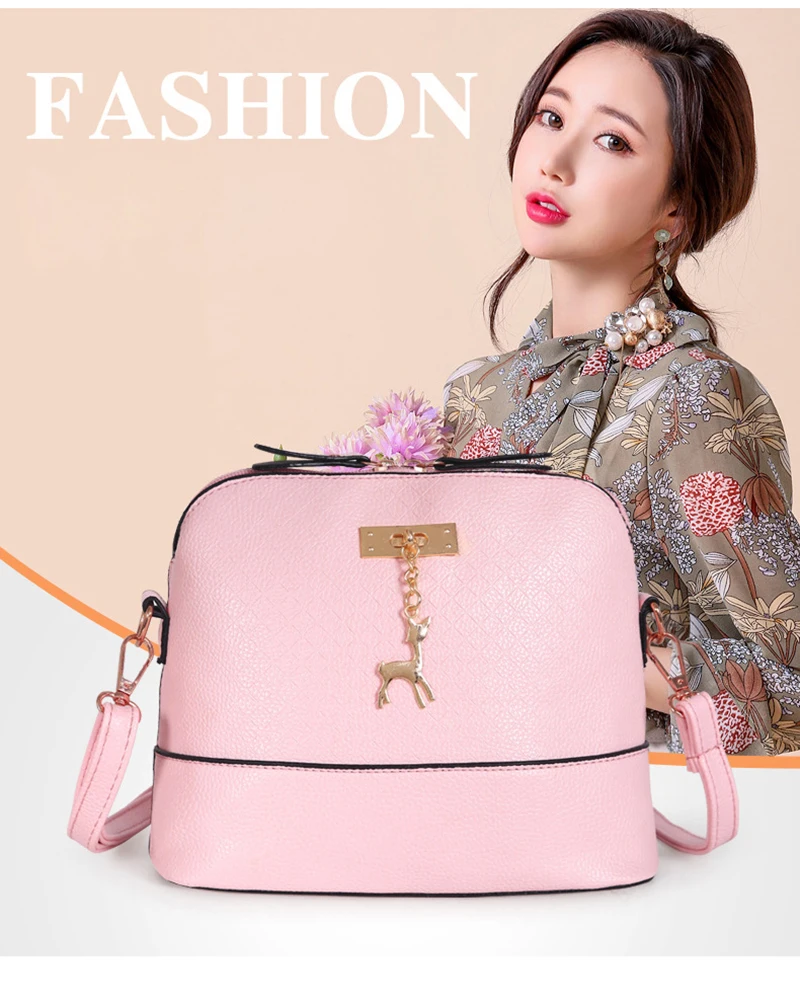 PU Leather Women Shoulder Bag Female Deer Toy Pendant Handbags Girl Small Crossbody Bag Fashion Shell Shape Messenger Bag Bolsos