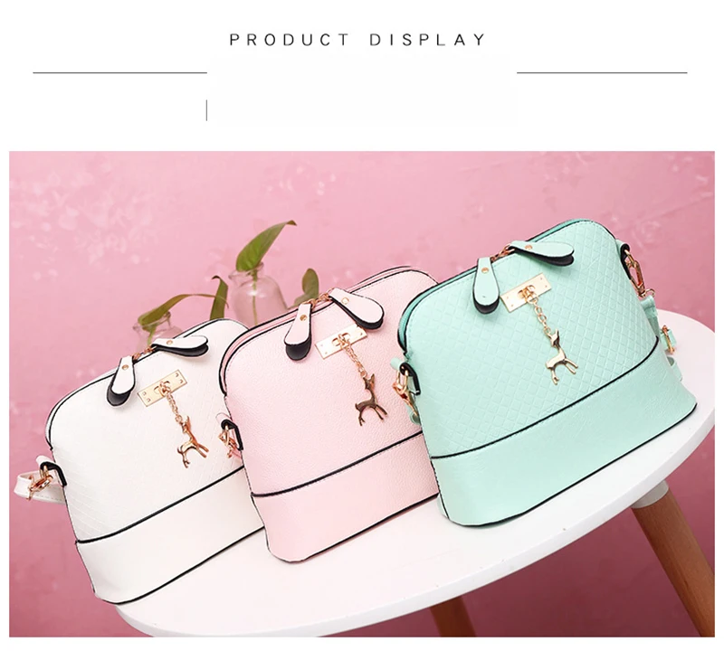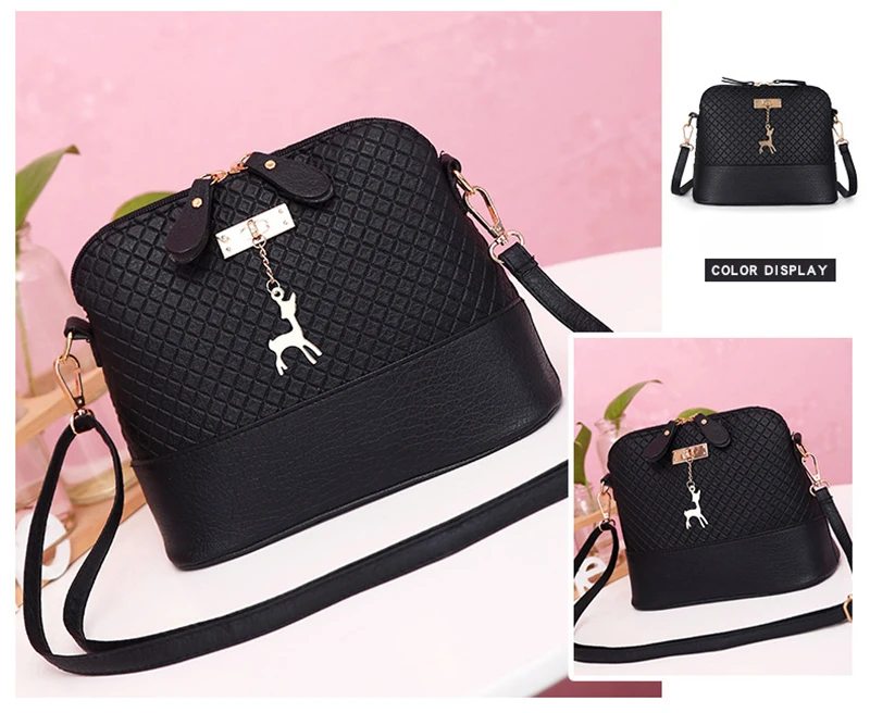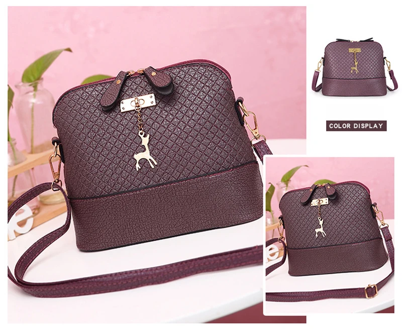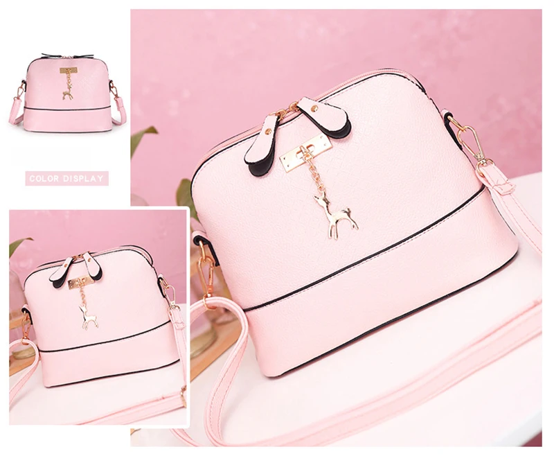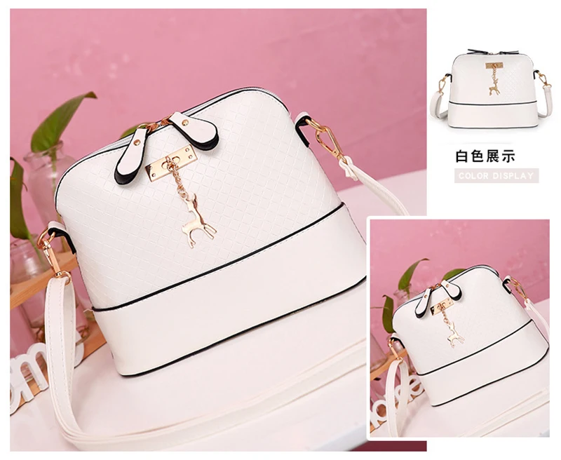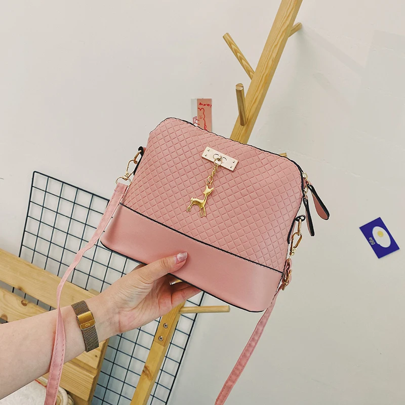 PU Leather Women Shoulder Bag Female Deer Toy Pendant Handbags Girl Small Crossbody Bag Fashion Shell Shape Messenger Bag Bolsos