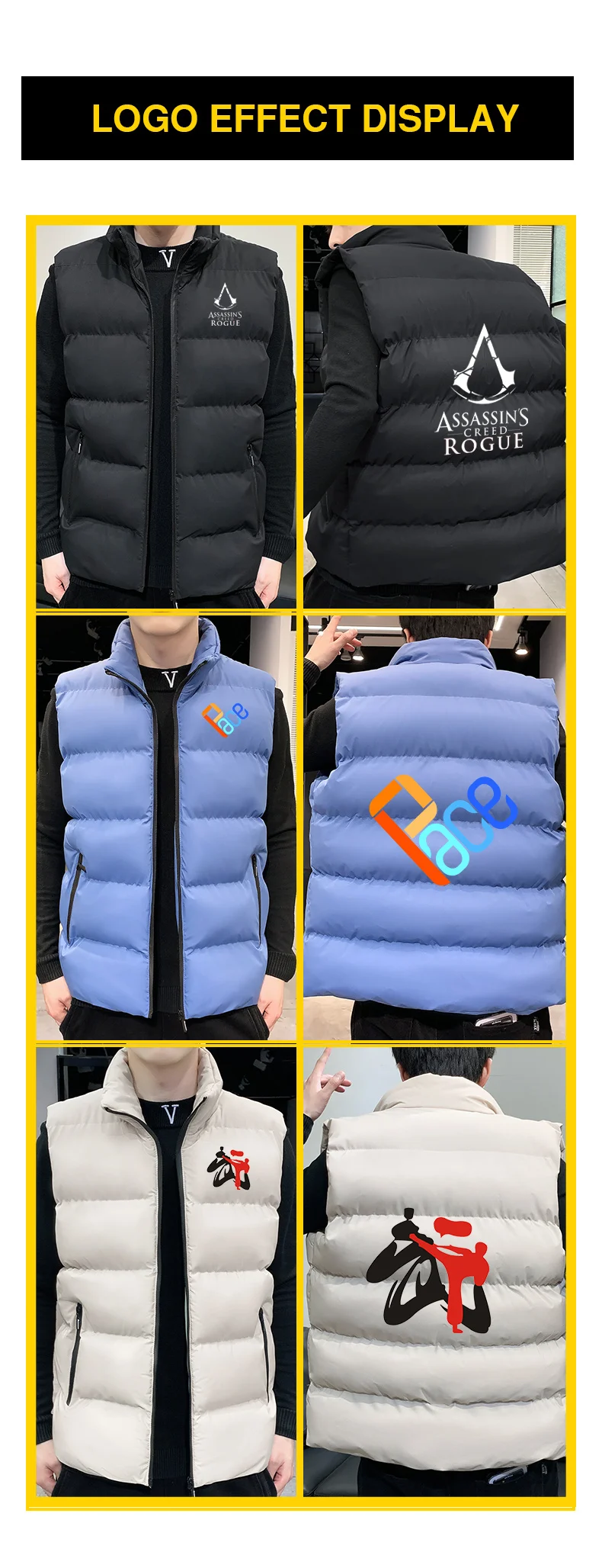 custom logo Mens winter Sleeveless Jackets Men New Vest Jacket print photo Male Autumn Warm Casual Waistcoat Vest