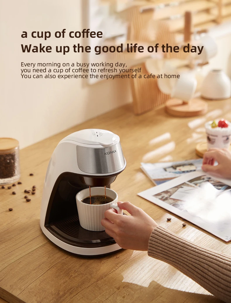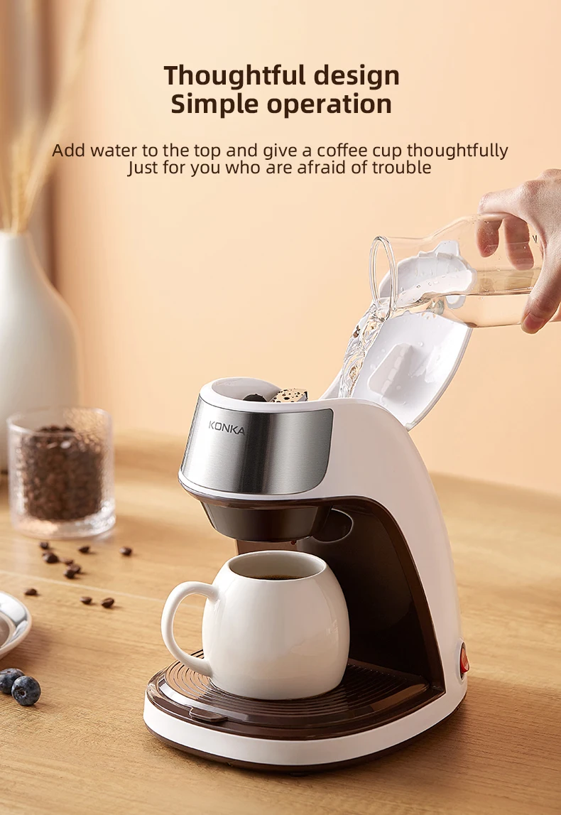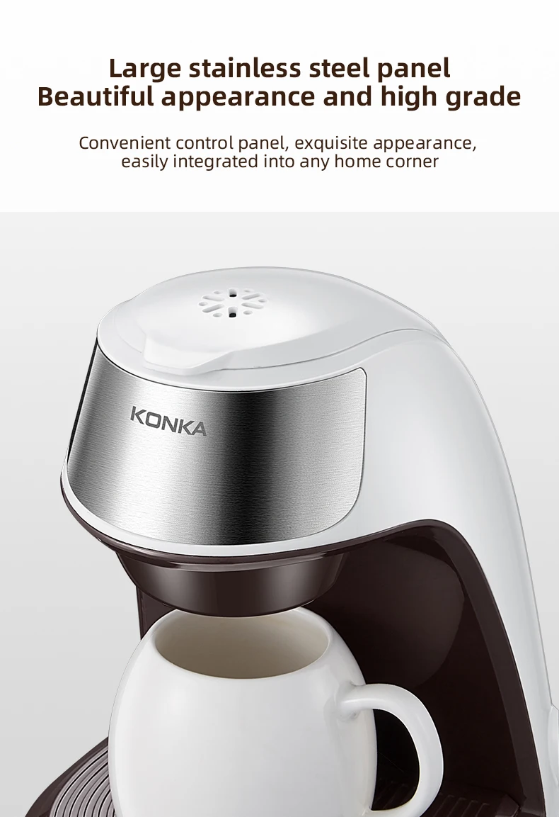 KONKA Automatic Coffee Machine Dripping Multifunction Tea Coffee Powder Water Tank 300ml Free Ceramic Coffee Cup For Office Home