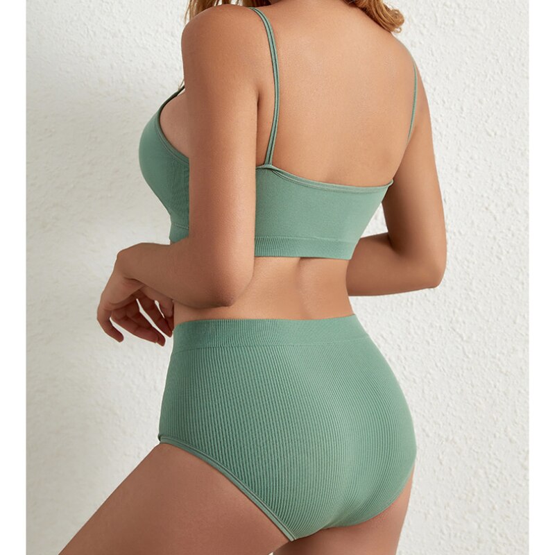 Seamless Women Bra Briefs Set Push Up Bra Crop Top High Waist Panties Sexy Lingerie Set