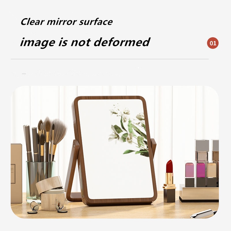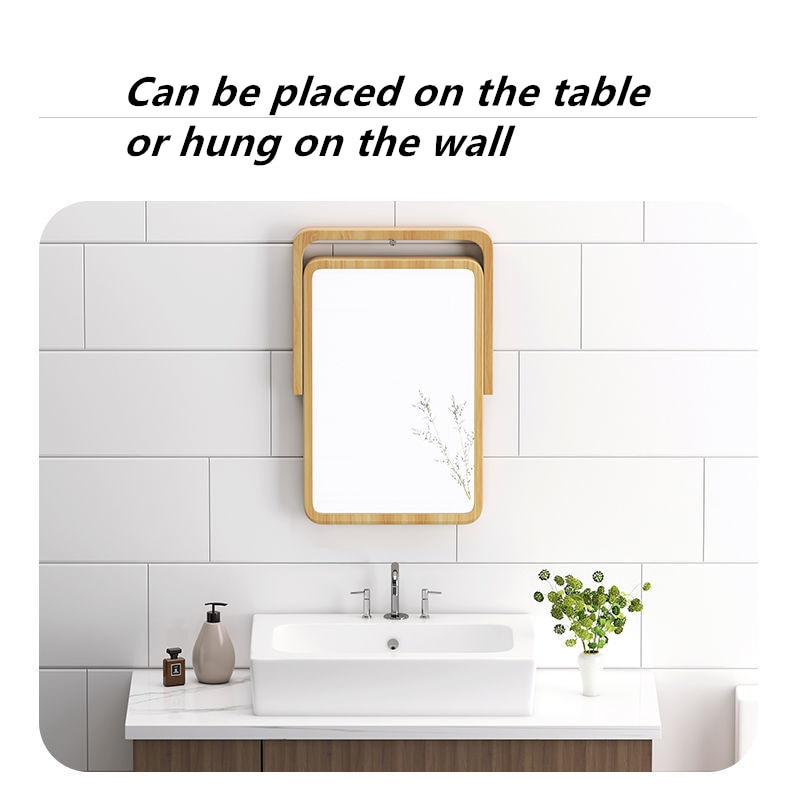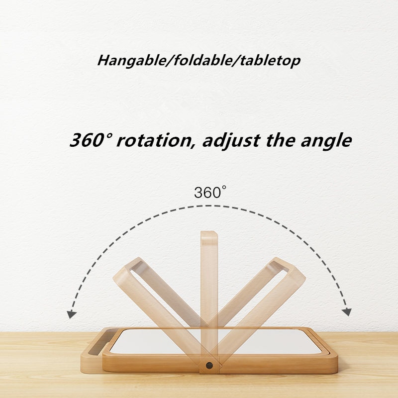 MR.JULIET Classic Solid Wood Frame Household Folding 360° Rotatable Dressing Table HD Portable Wall-mounted Makeup Mirror