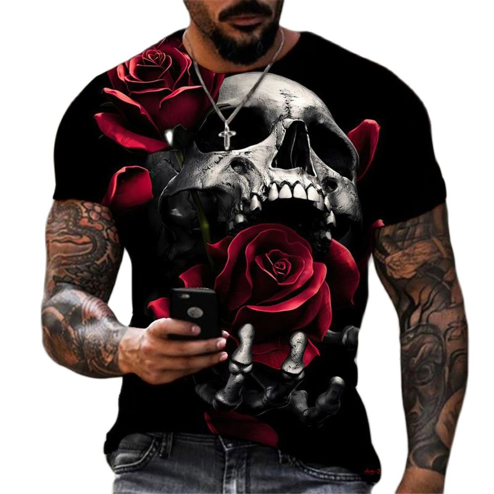 Fashion Skull Graphic 3D Print Men t-shirt Summer O Collar Short Sleeve Street Oversized t-shirt Loose Tops Tee Men Clothing 6XL