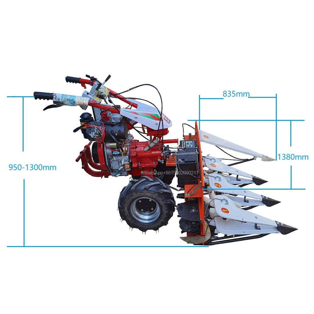 Mini wheat and rice harvester is a manual self-propelled harvester. It is mainly used for the harvesting of rice and wheat, but also for the harvesting of soybeans and reeds. It is widely used in plains, hills, slopes, small fields and other places.
