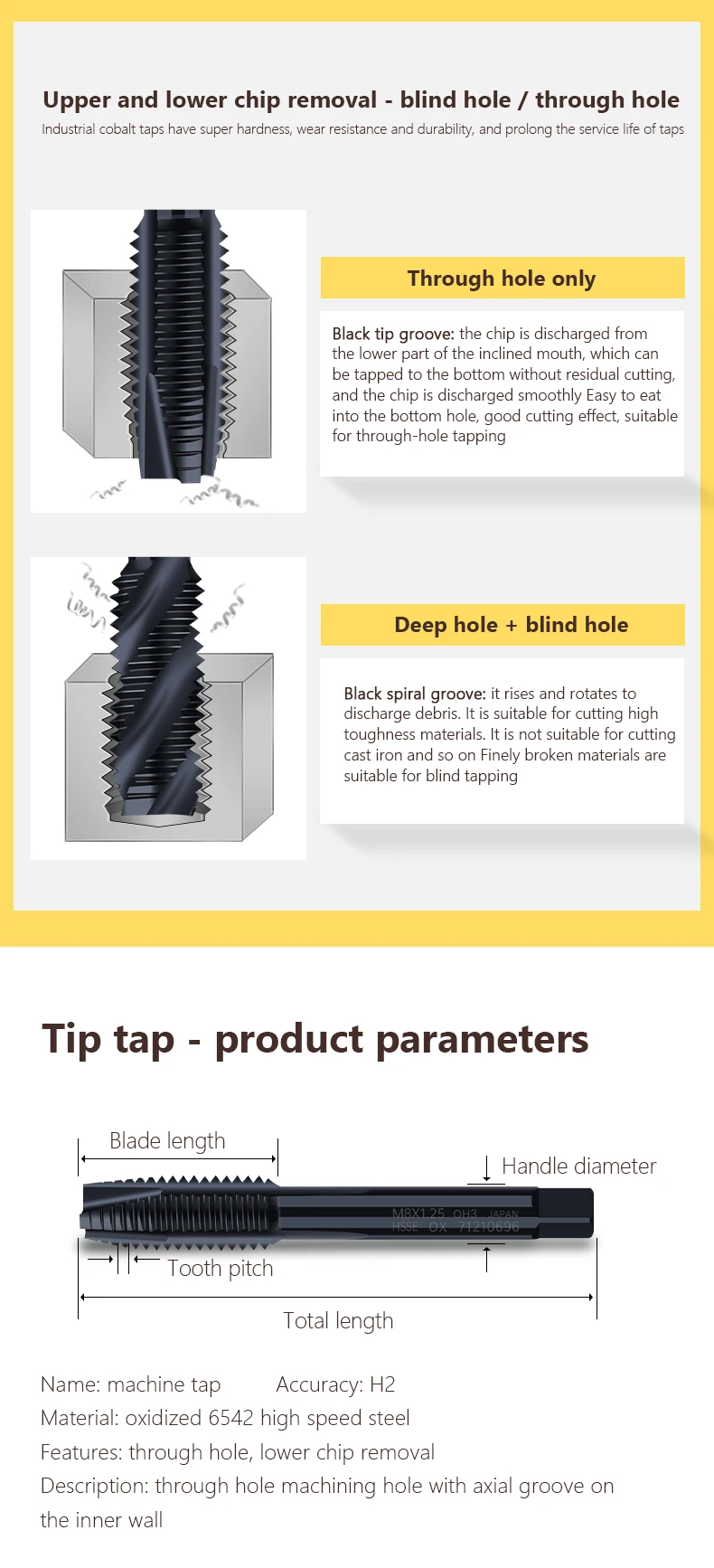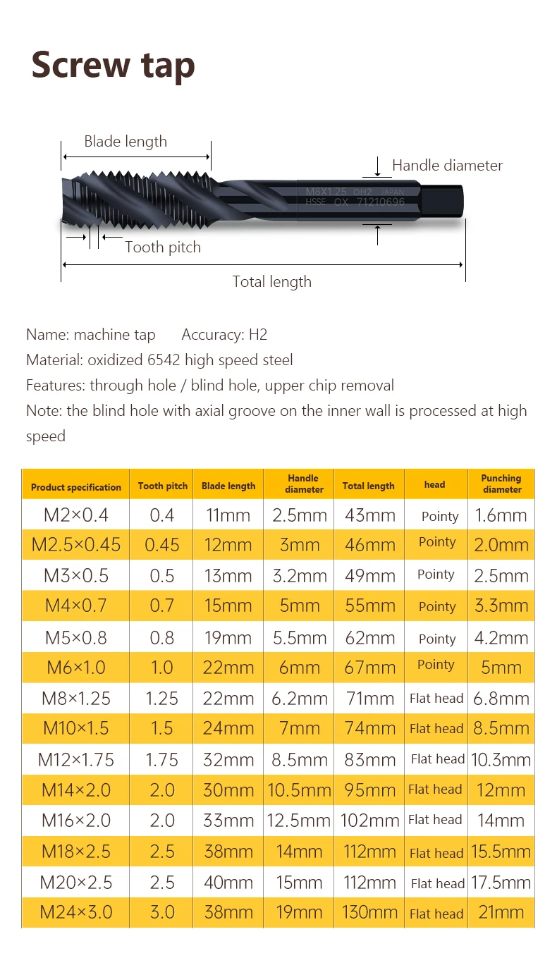 * The machine tap is sharp and has stronger wear resistance