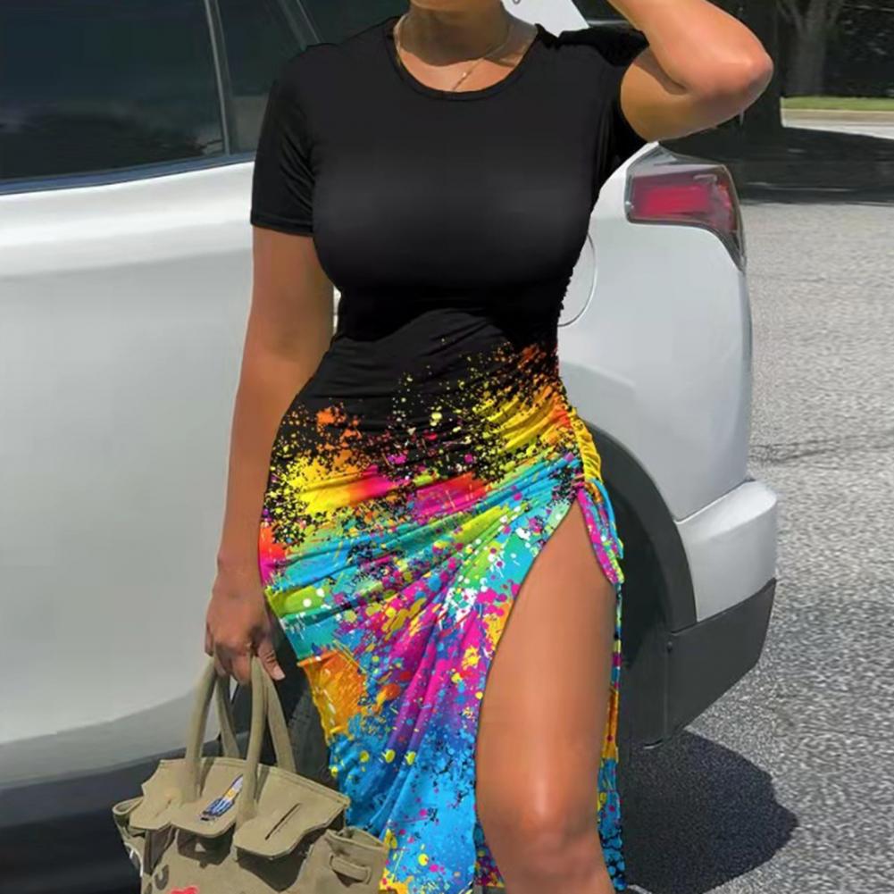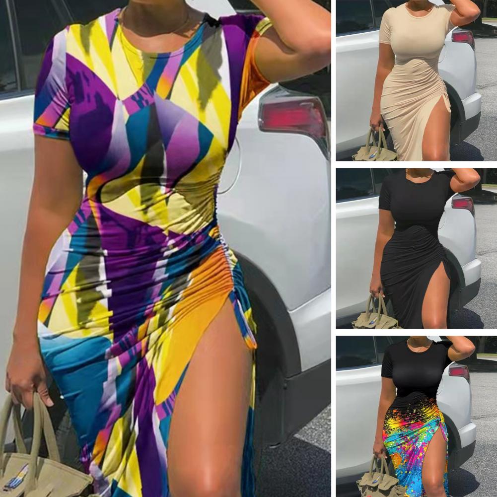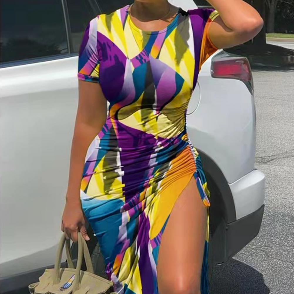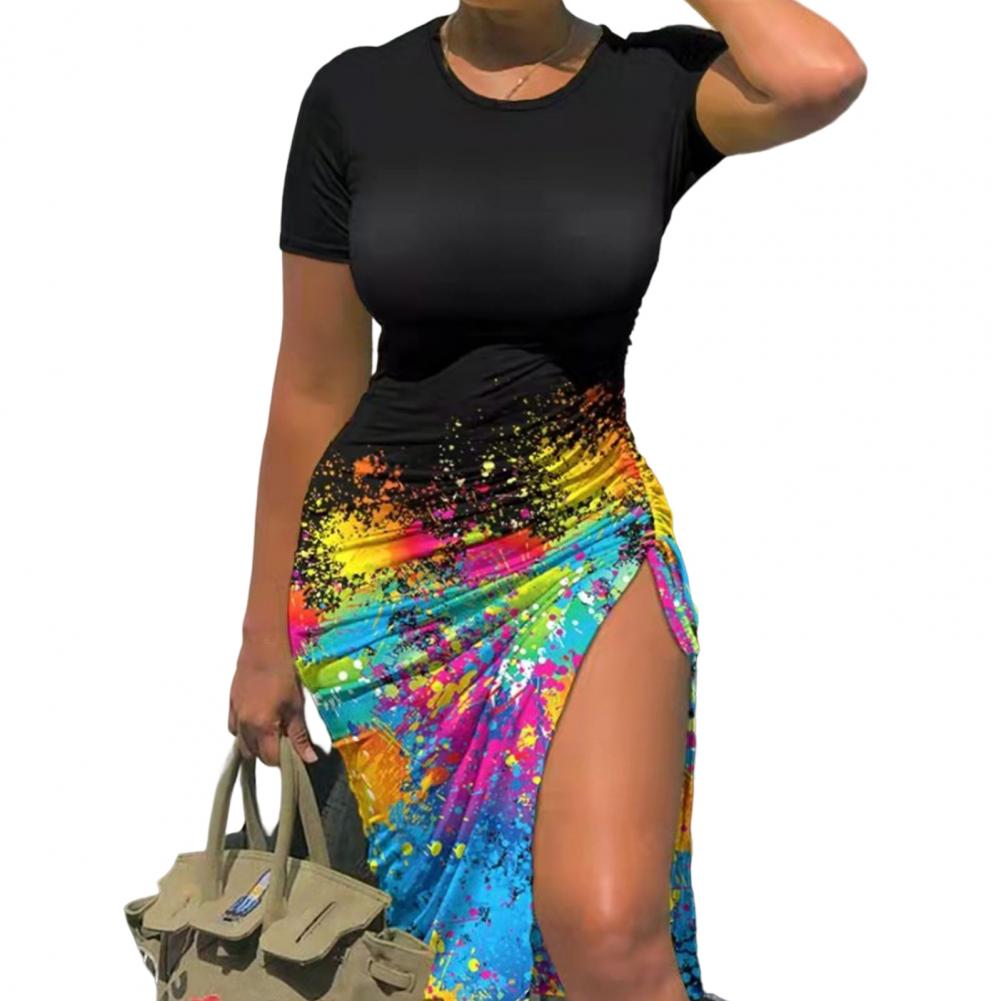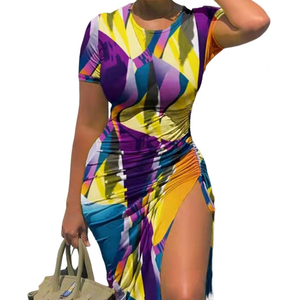 This dress features vivid colors, o-neck and side split, which can catch people's attention easily and enable you to leave the strong first sight on others.