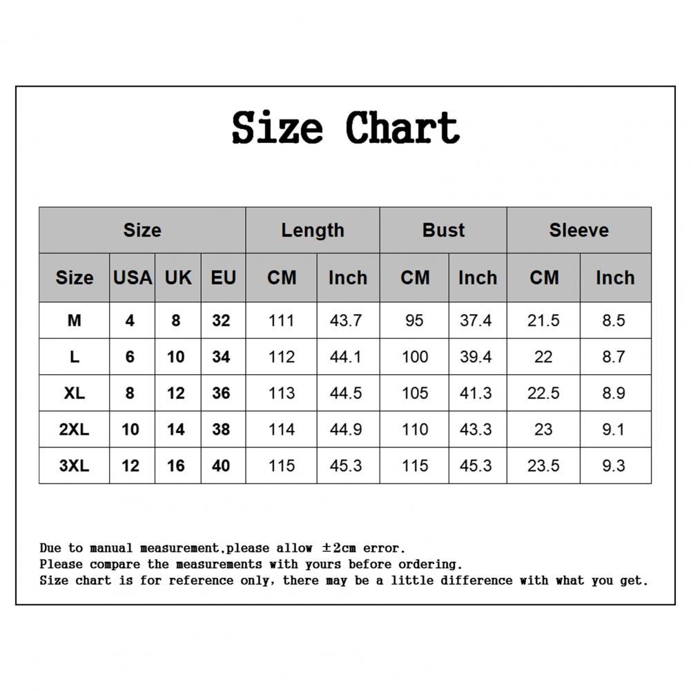 Size: 3XL, Bust: 115cm/45.3", Length: 115cm/45.3", Sleeve: 23.5cm/9.3" (Approx.)