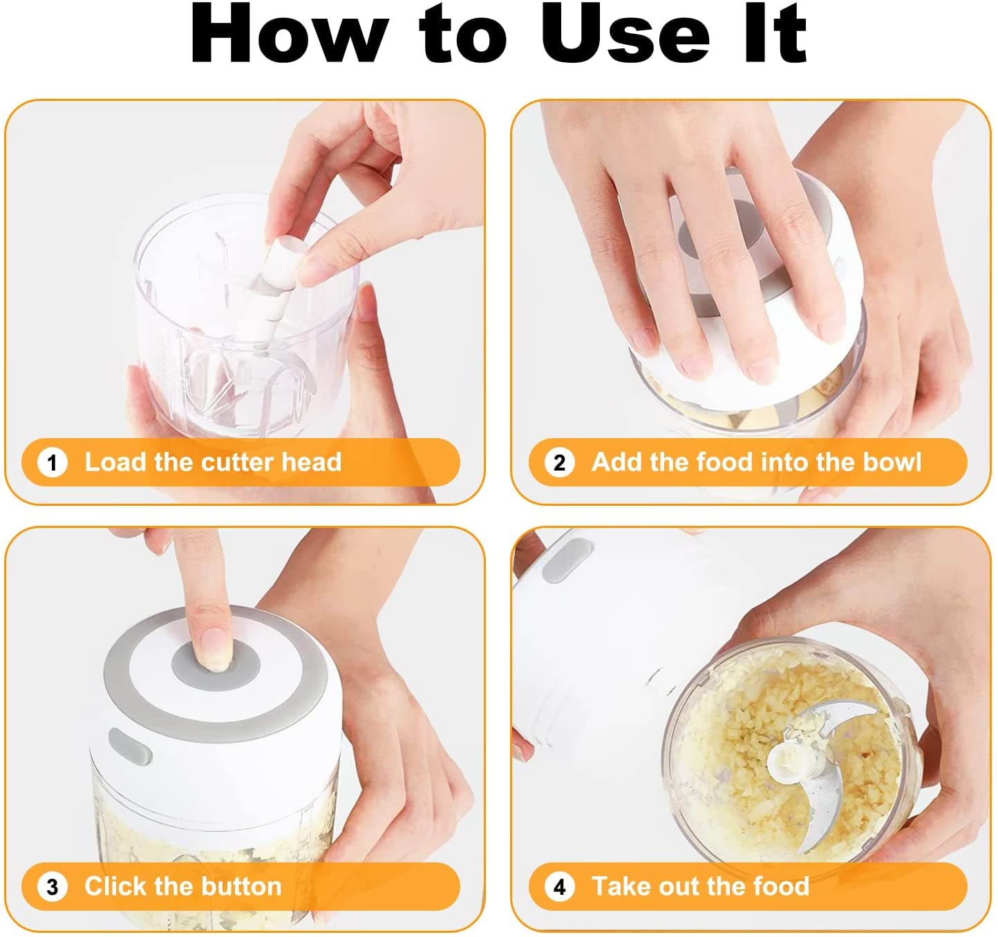 100/250mL Mini Electric Garlic Chopper Vegetable Chili Meat Ginger Masher Machine Sturdy Durable USB Charging Blenders Kitchen