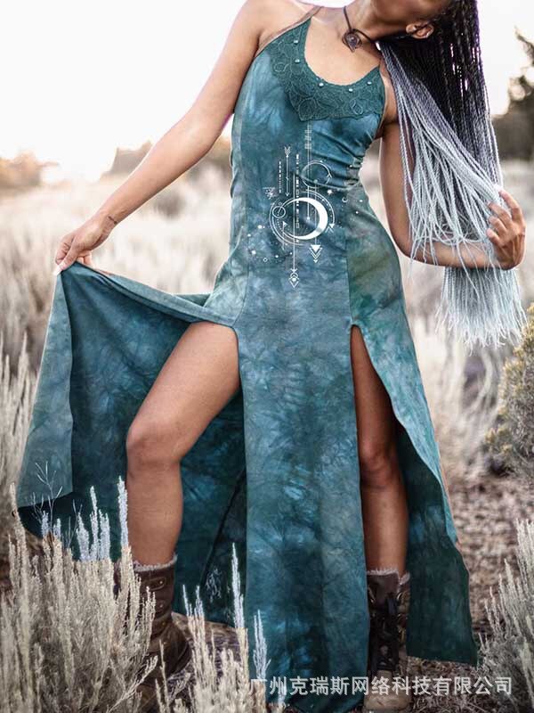 Vintage Gothic Y2K Party Dresses Women Punk Retro Mediaeval Sexy Long Maxi Dresses Summer Sleeveless V Neck Oversized Dresses