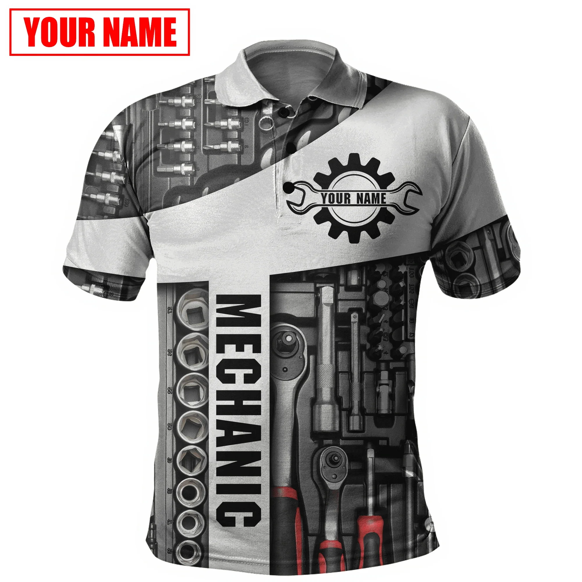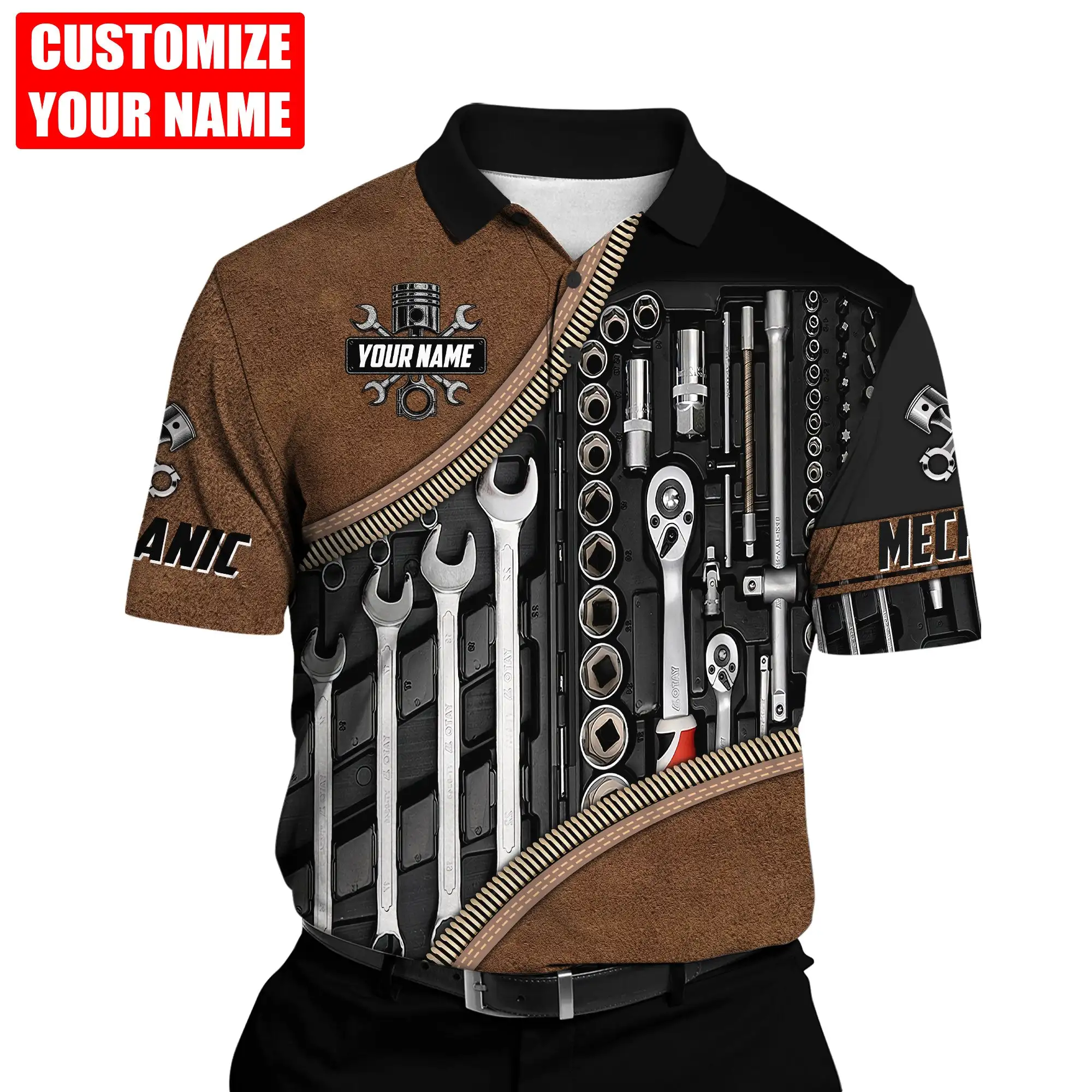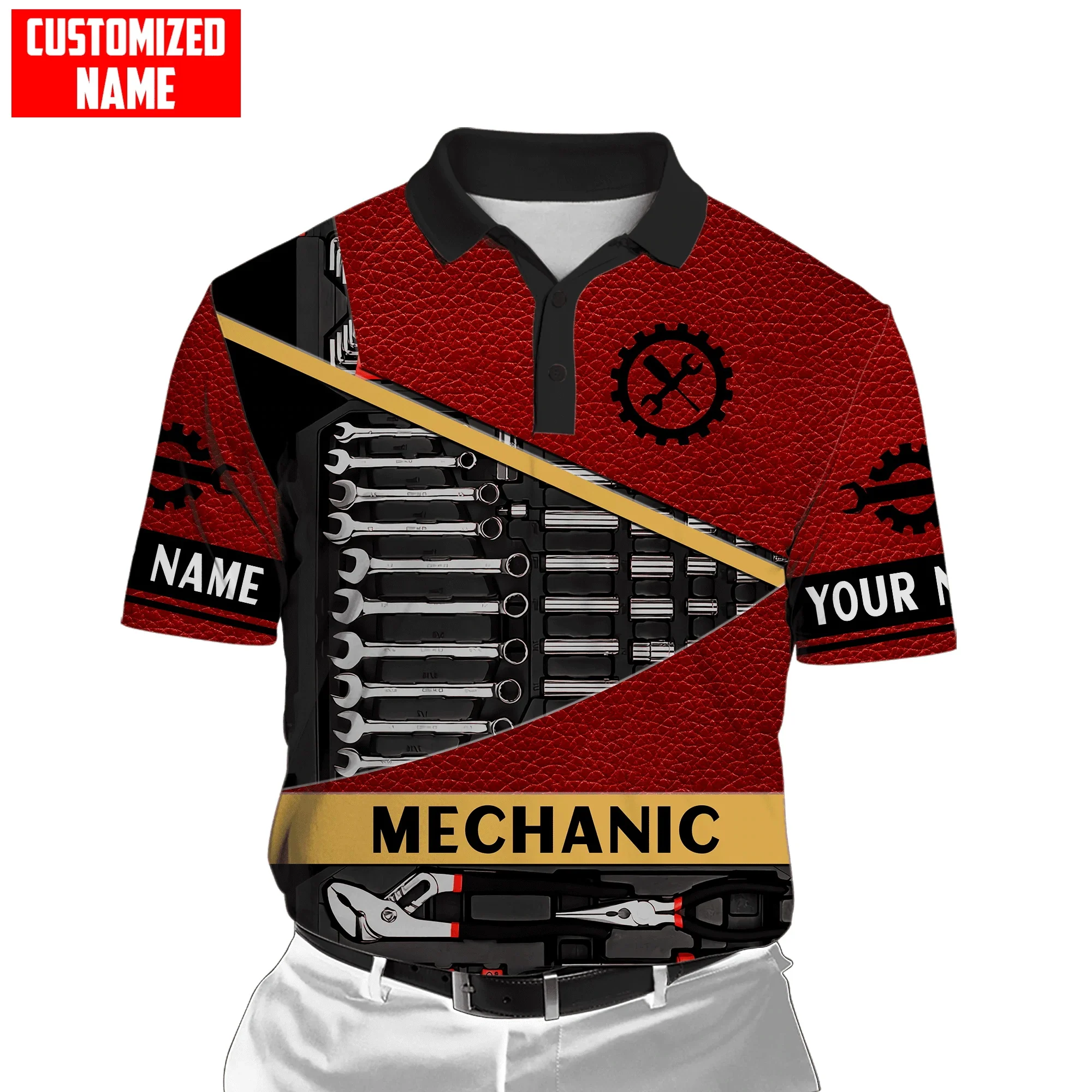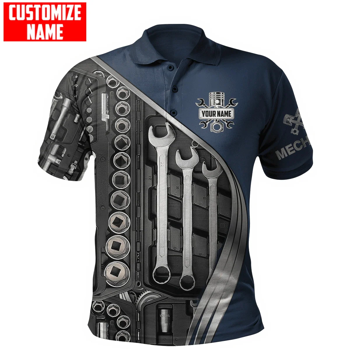 Personalized Name Mechanic 3D All Over Printed Mens Polo Shirt Summer Short Sleeve t-shirt Street Casual POLO shirt tops WK11