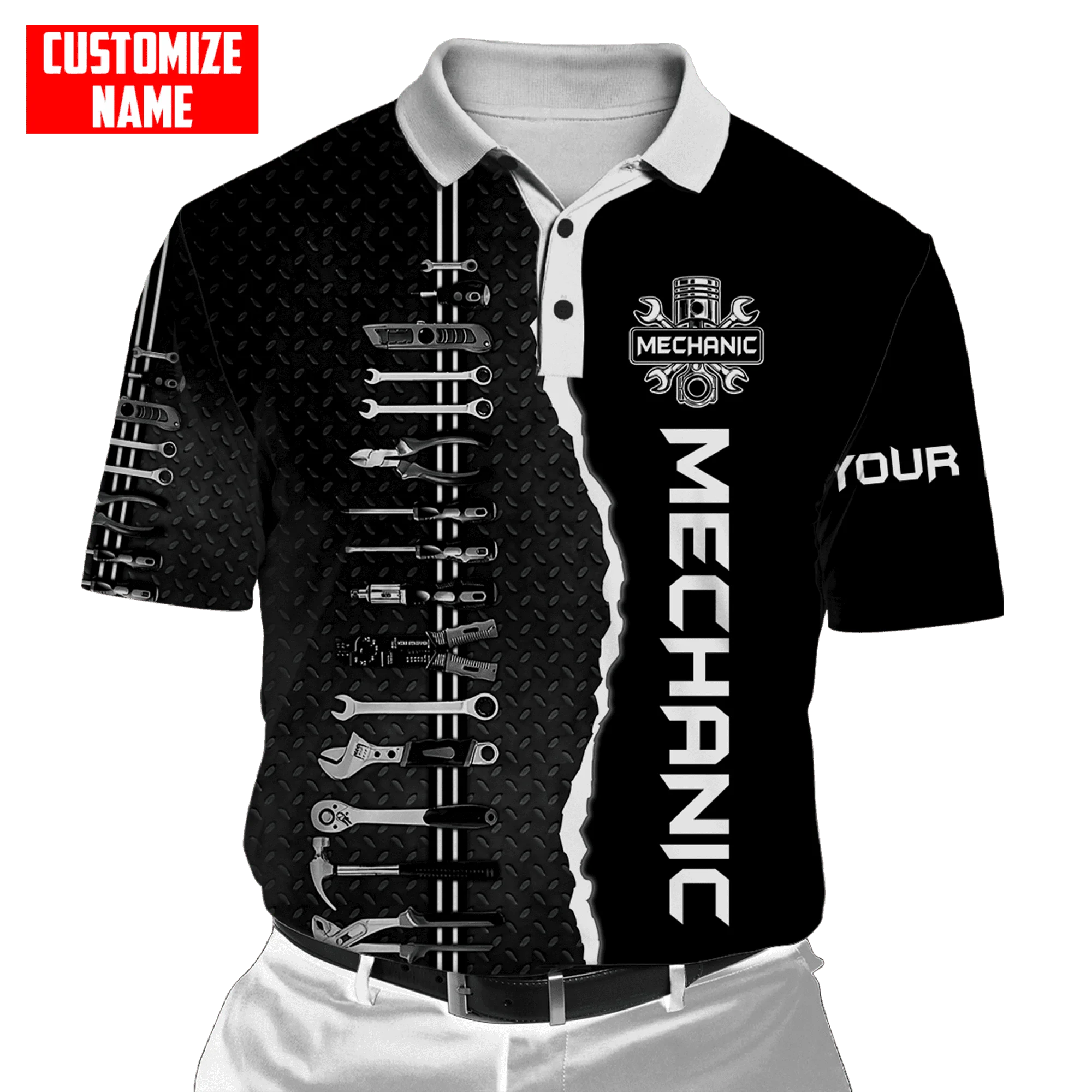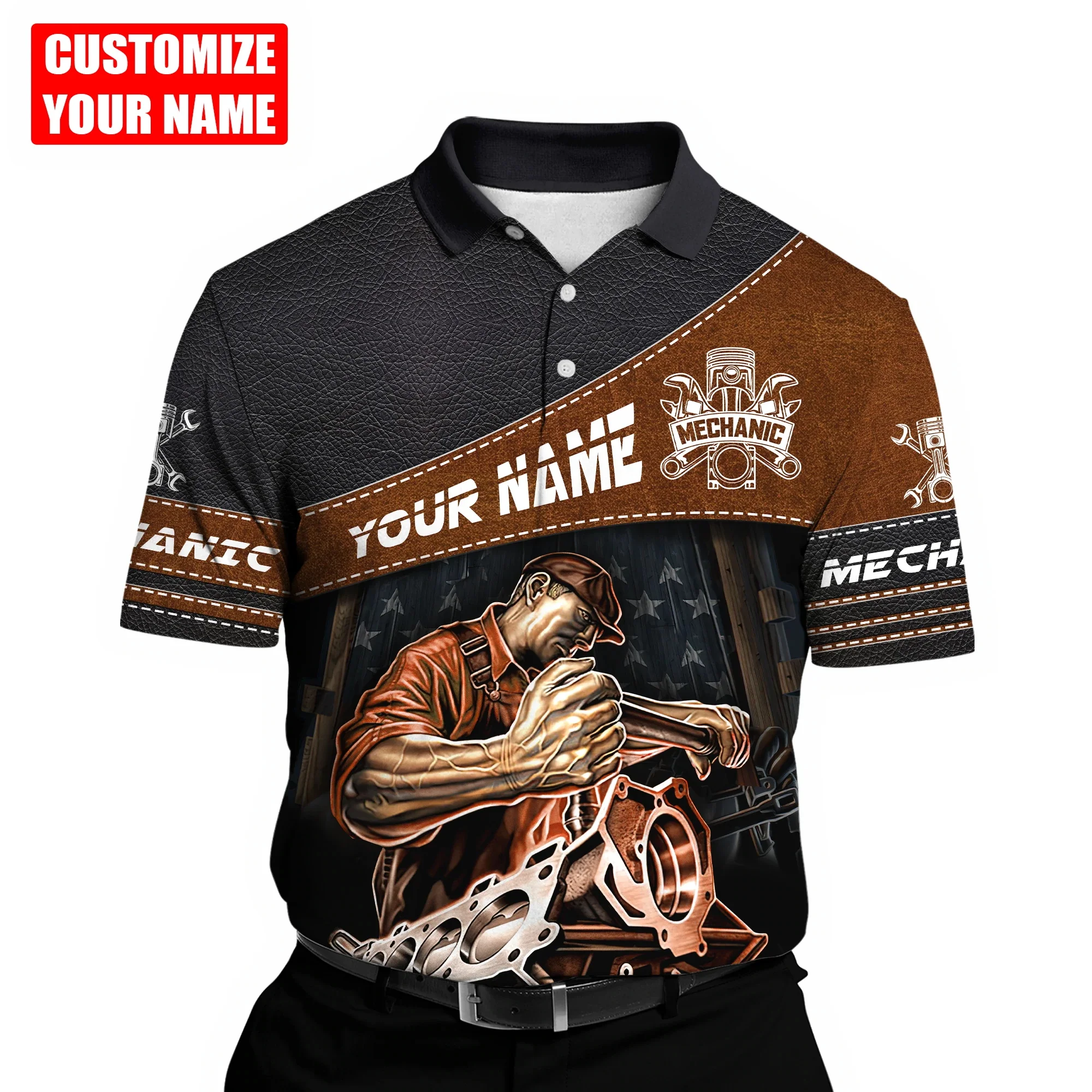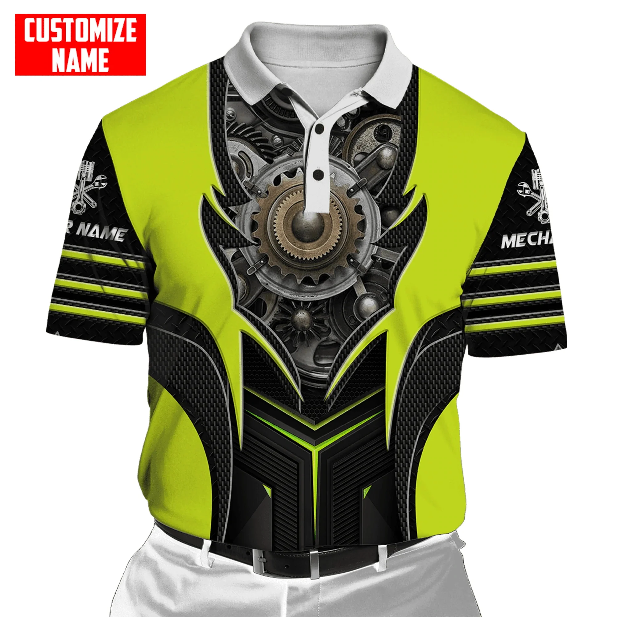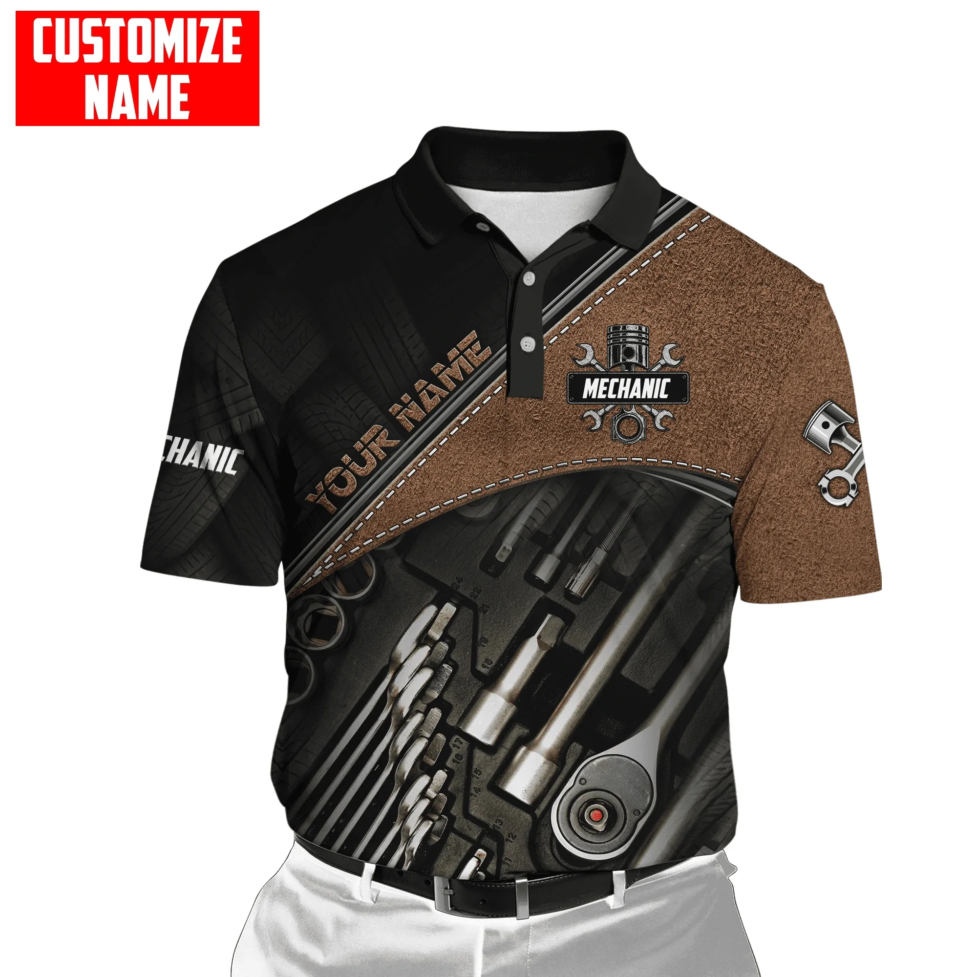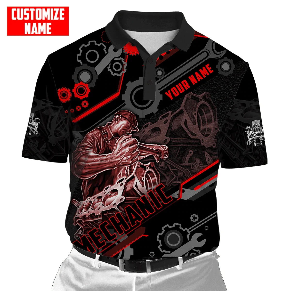 Personalized Name Mechanic 3D All Over Printed Mens Polo Shirt Summer Short Sleeve t-shirt Street Casual POLO shirt tops WK11