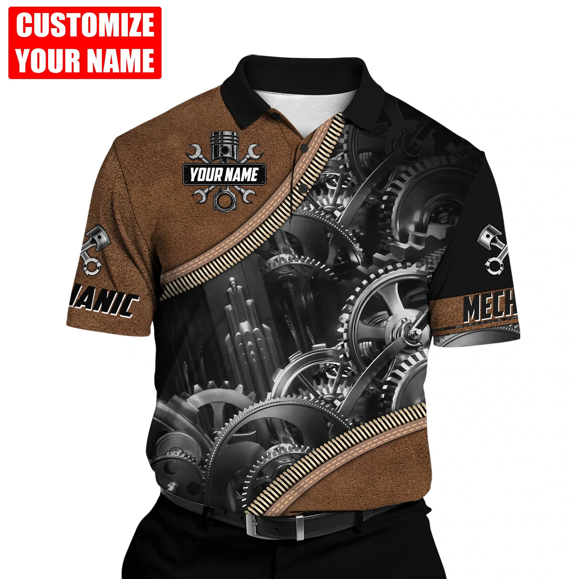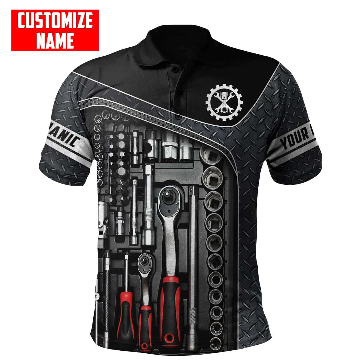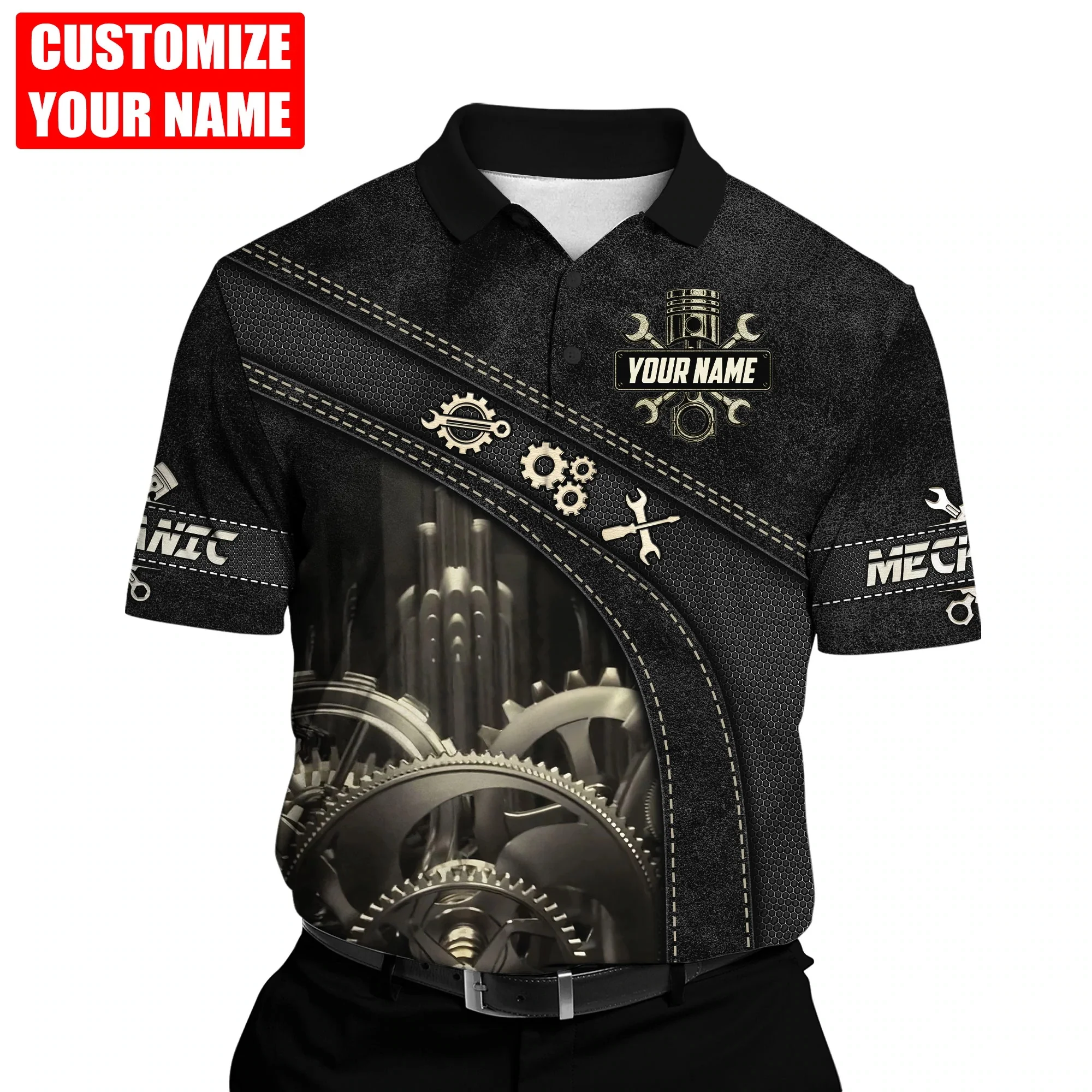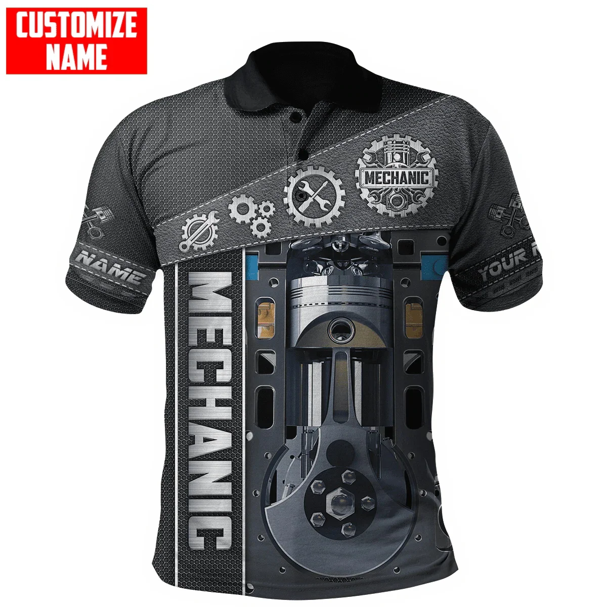 Personalized Name Mechanic 3D All Over Printed Mens Polo Shirt Summer Short Sleeve t-shirt Street Casual POLO shirt tops WK11