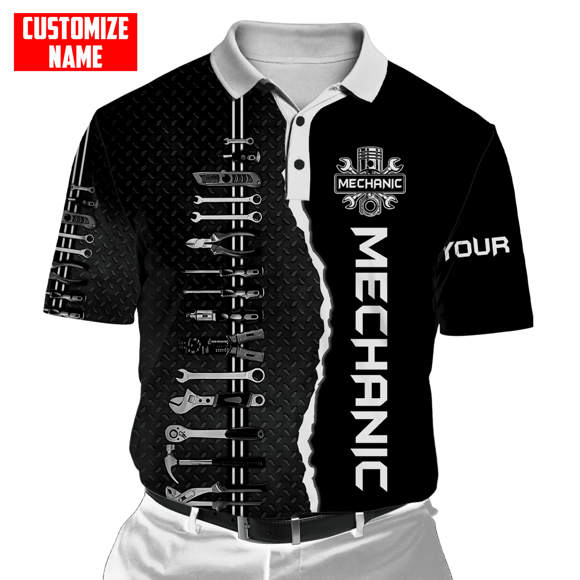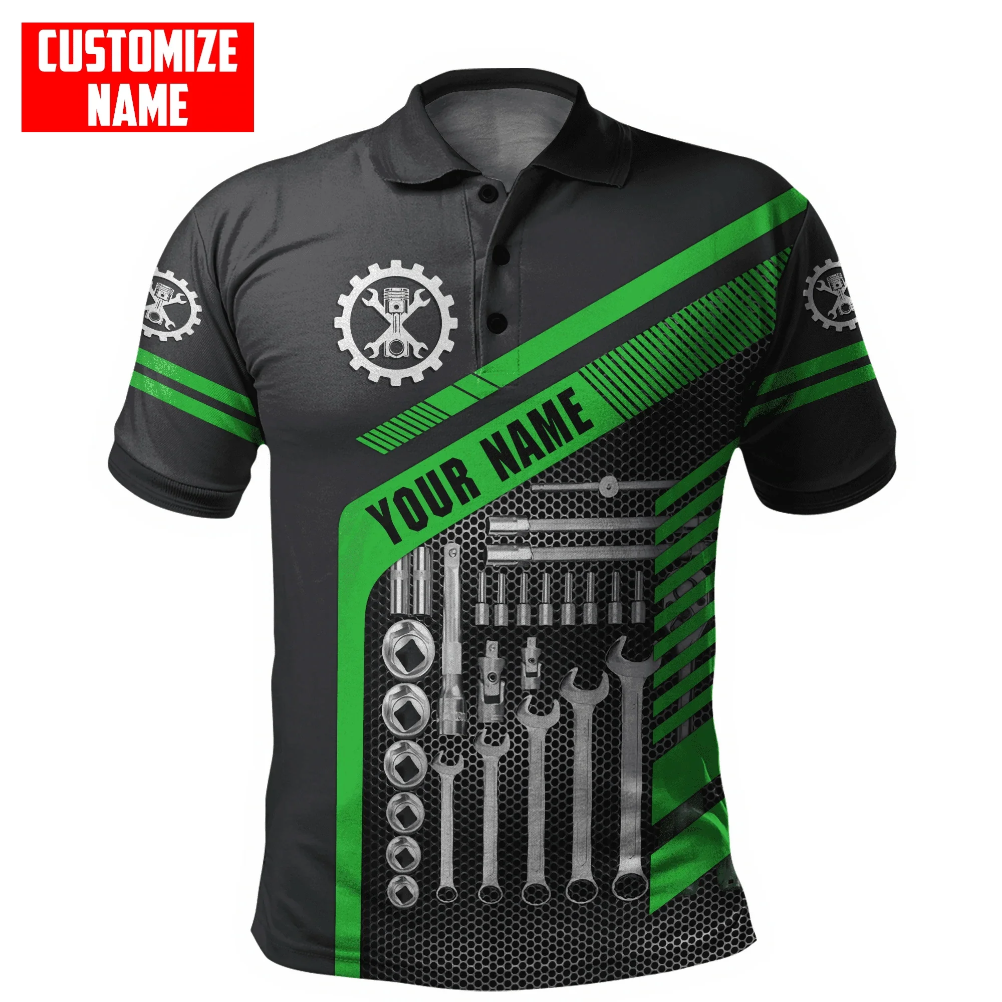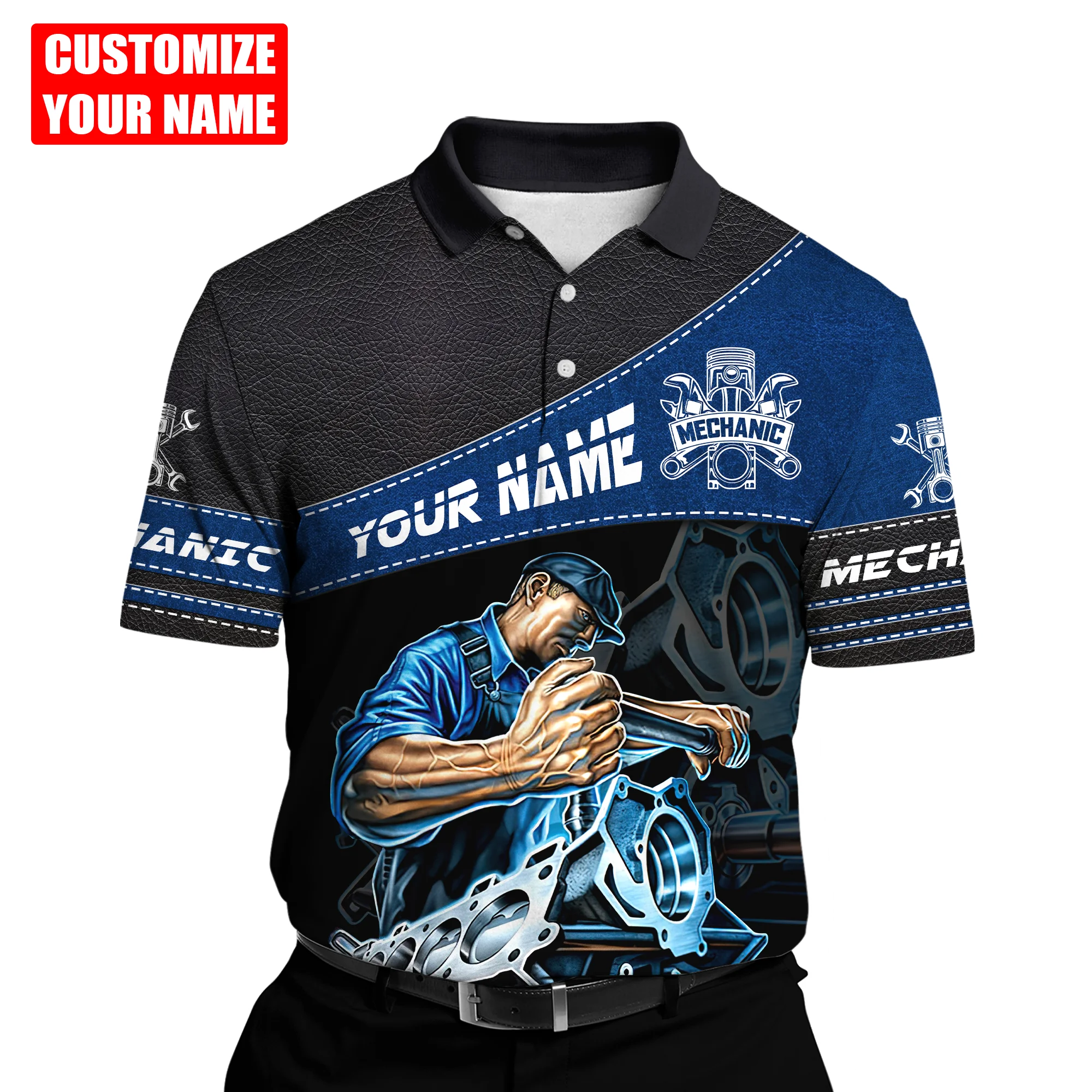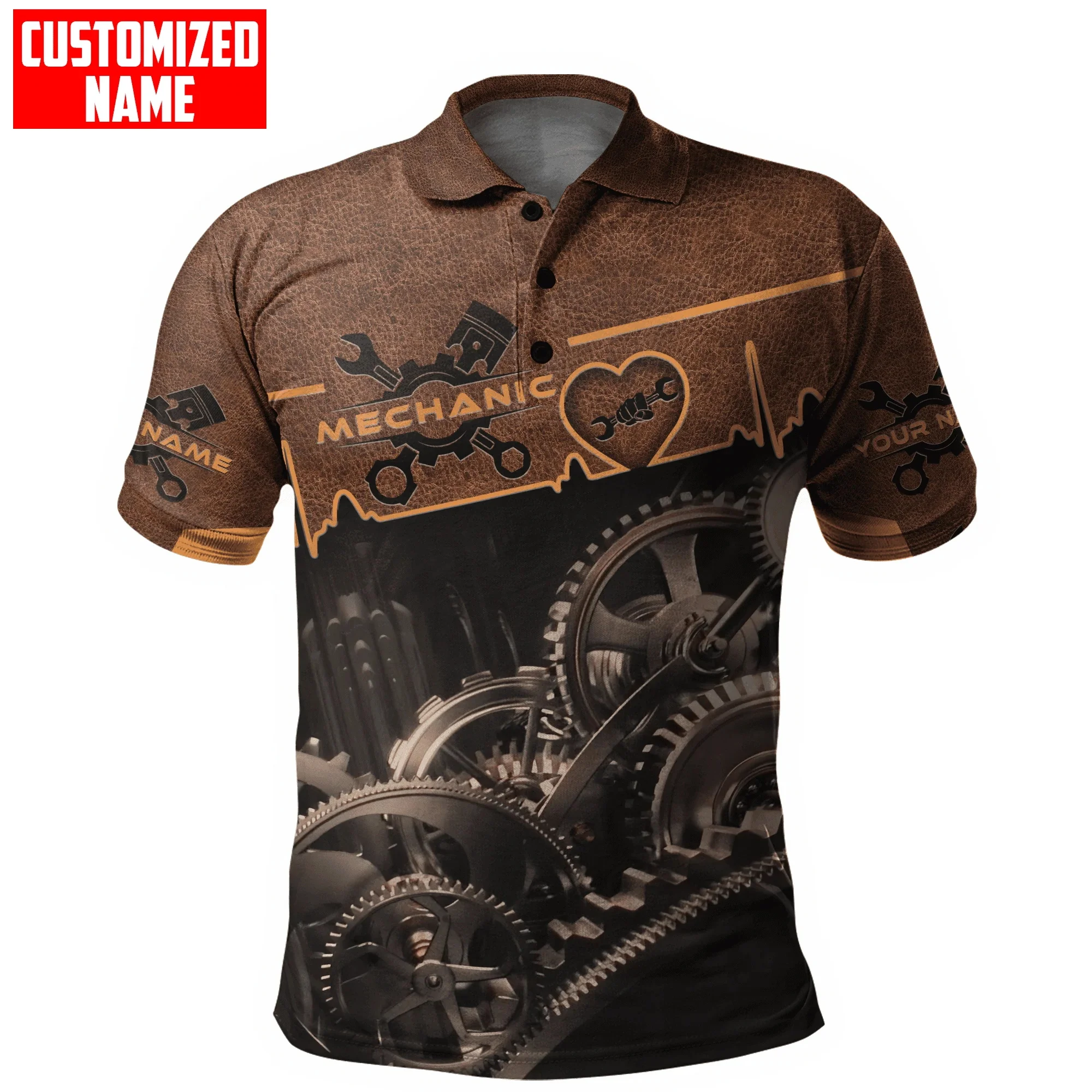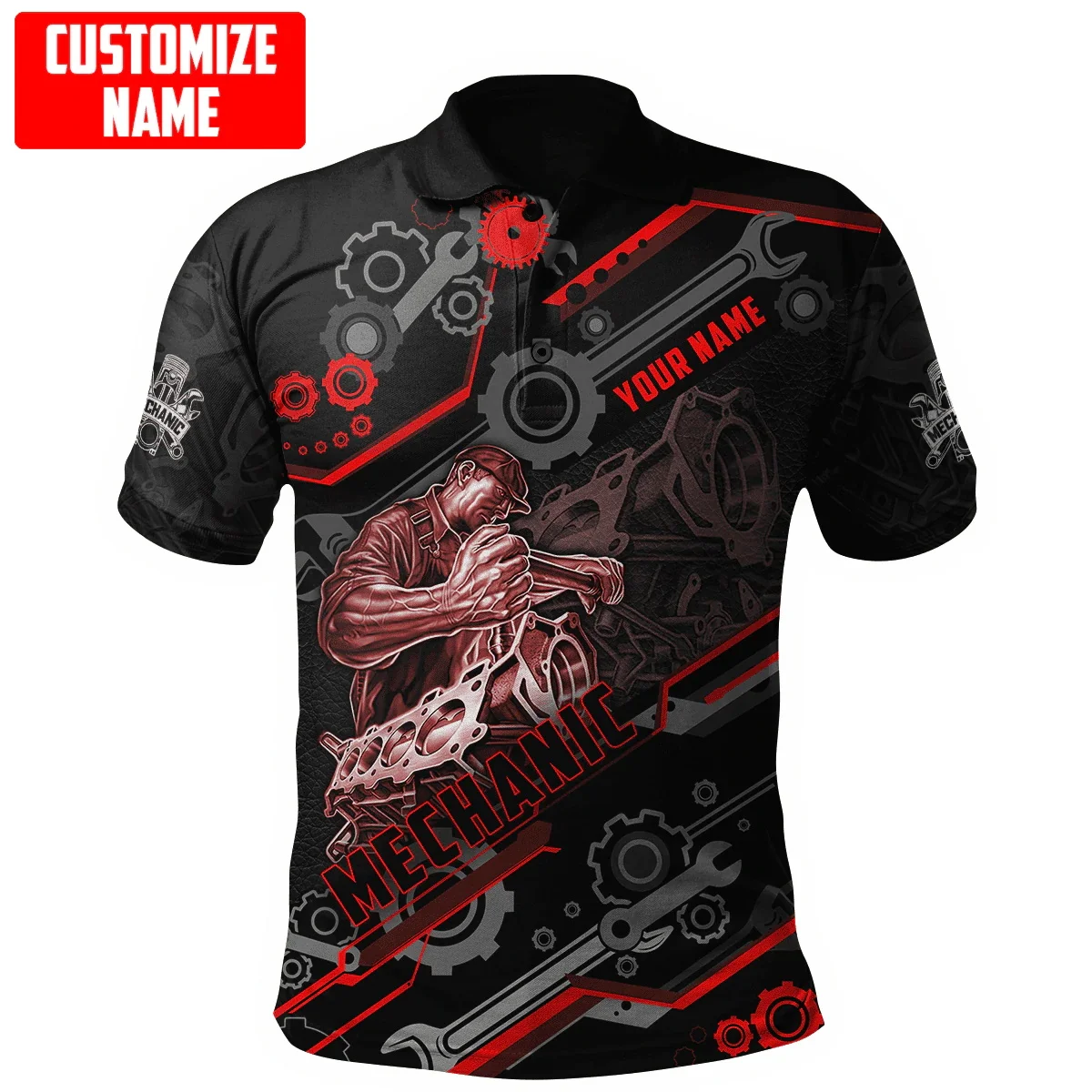 Personalized Name Mechanic 3D All Over Printed Mens Polo Shirt Summer Short Sleeve t-shirt Street Casual POLO shirt tops WK11