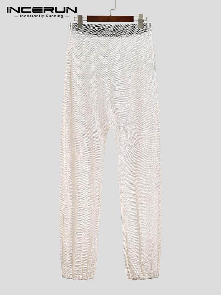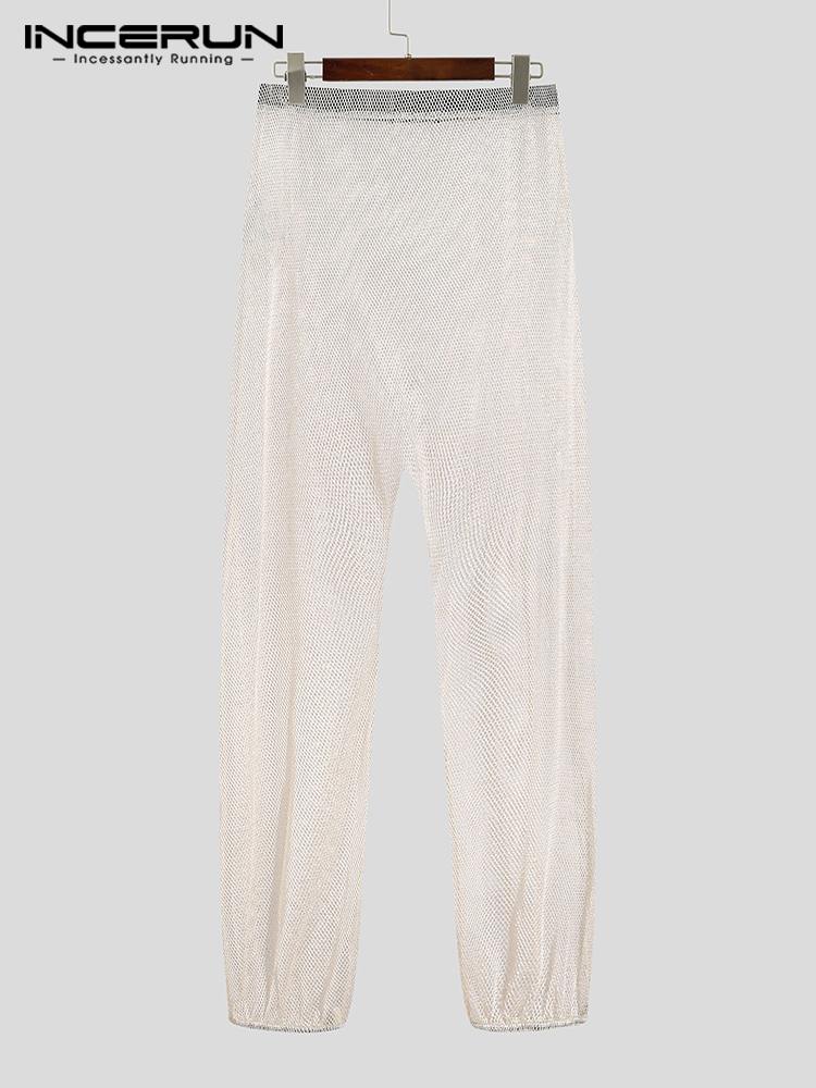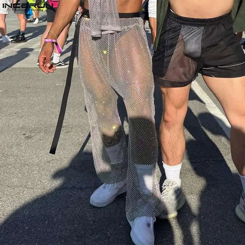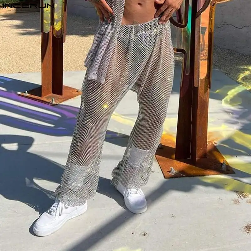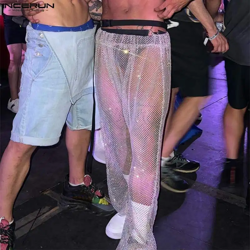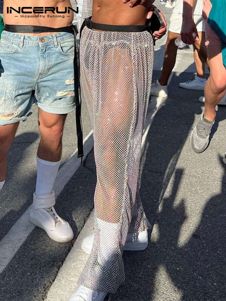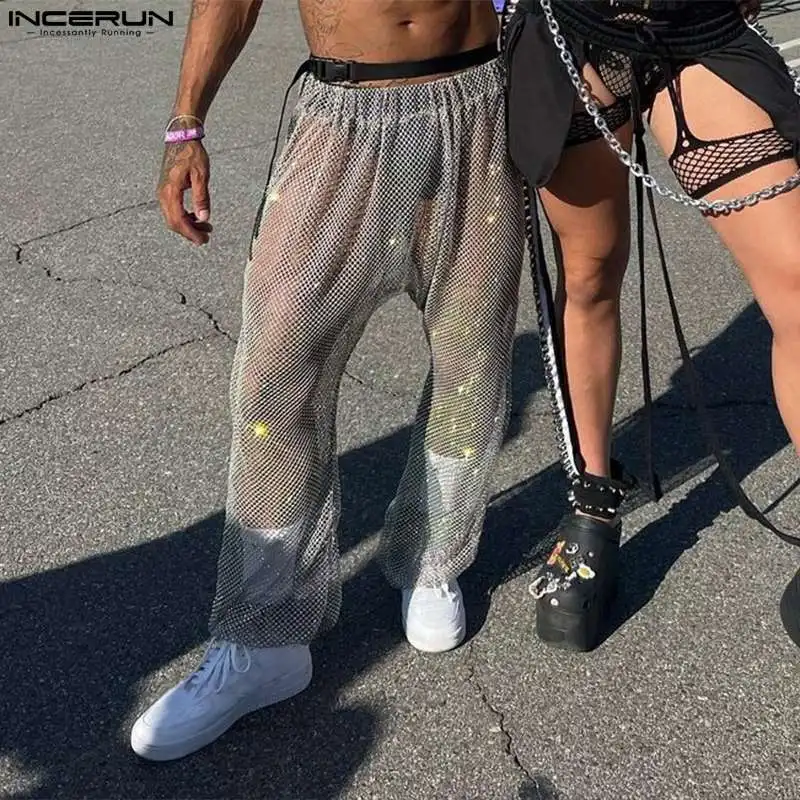 Party Shows Style Long Pants INCERUN New Men's See-through Mesh Pantalons Stylish Hot Sale Shiny Comfortable Trousers S-5XL 2023