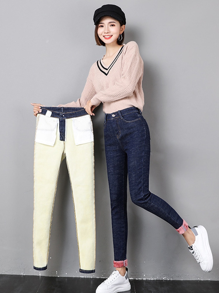 Fashion Stretch High Waist Pencil Pants Female Casual Velvet Jeans Womens High Quality Jeans Thick Women Pants 2022