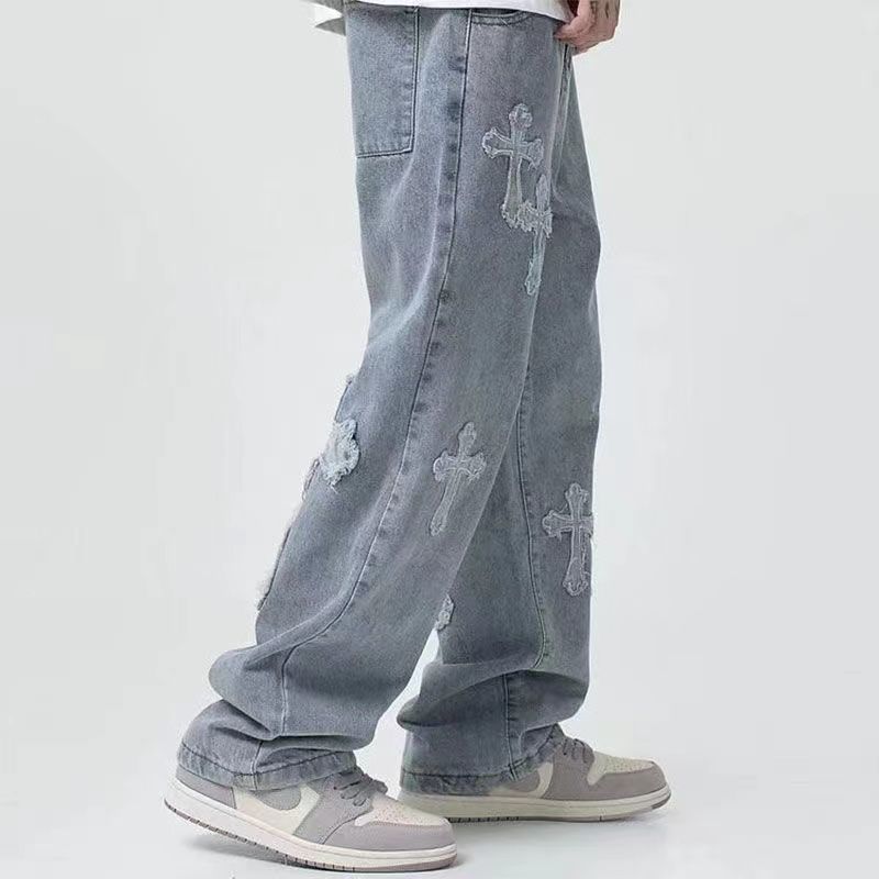 Streetwear Gothic Jeans Women Y2K High Waist Jeans Trousers Casual Cross Cargo Pants Korean Summer Straight Baggy Punk Clothes