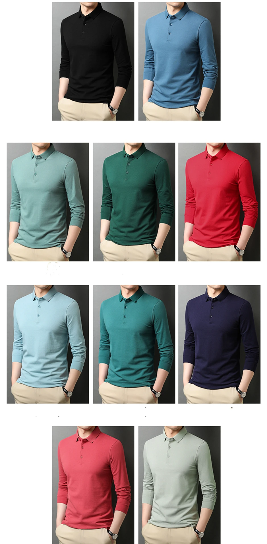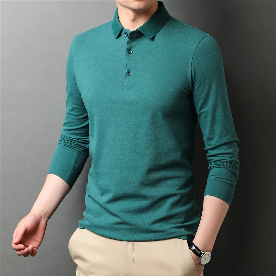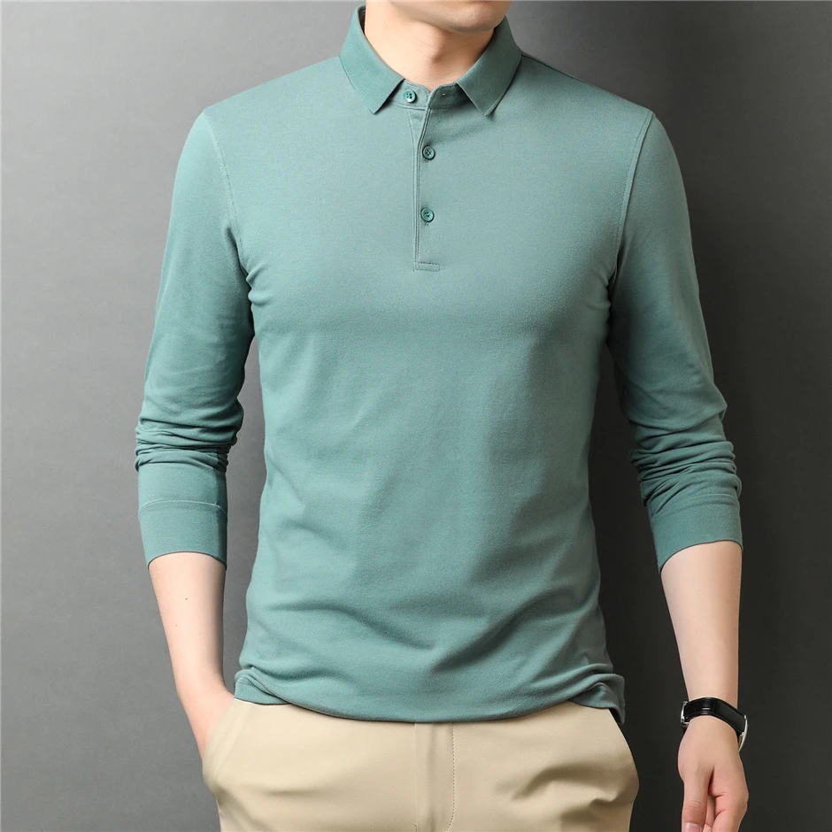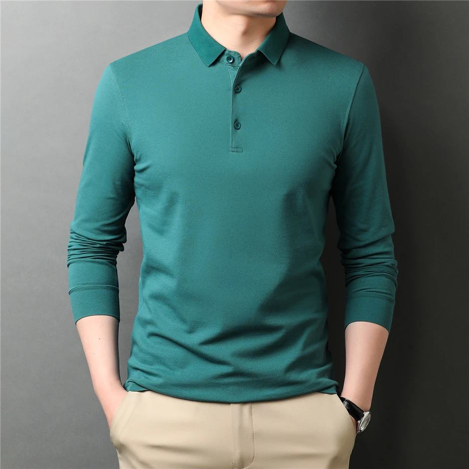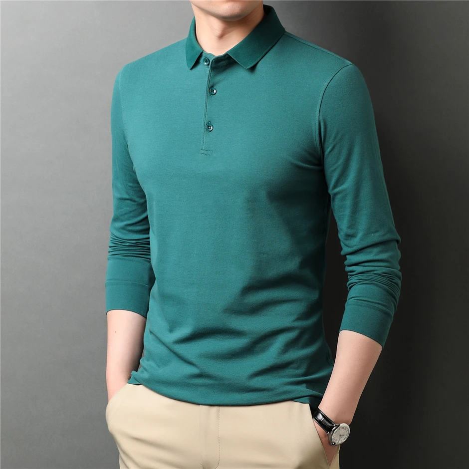 COODRONY Pure Color Long Sleeve Cotton Polo-Shirt Men Brand Clothing Spring Autumn Classic Business Casual T Shirts Homme Z5120