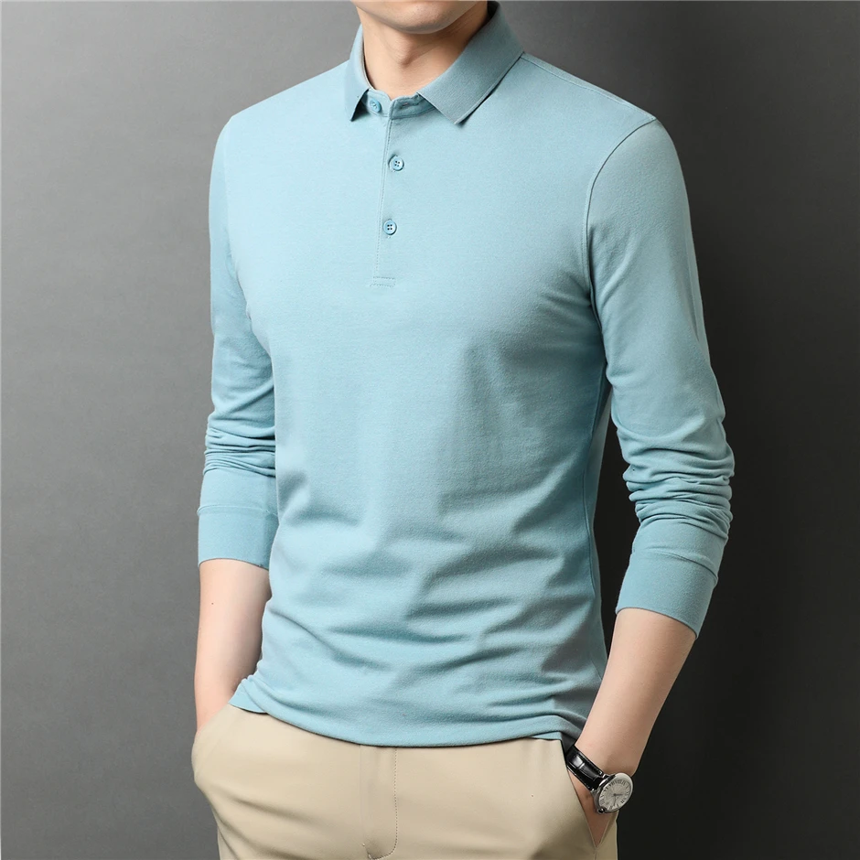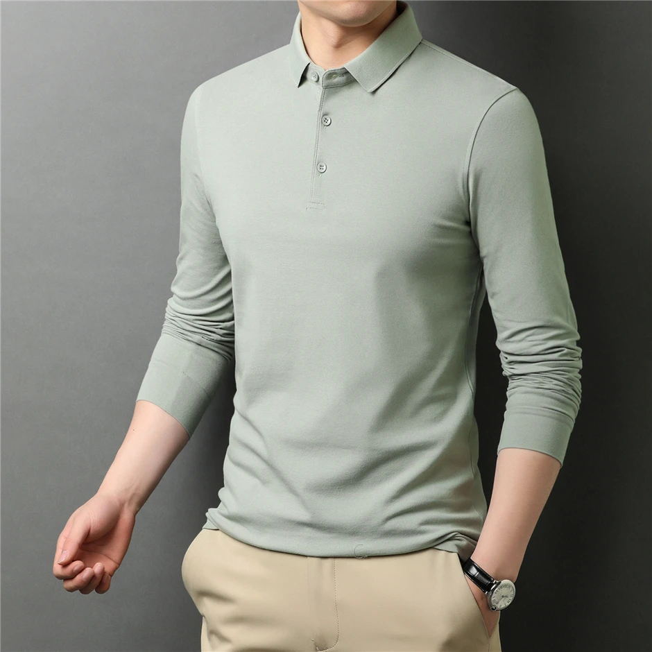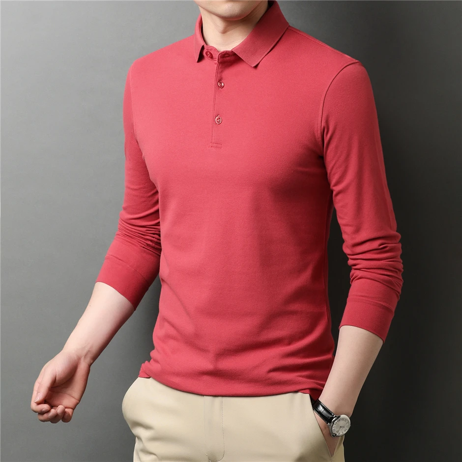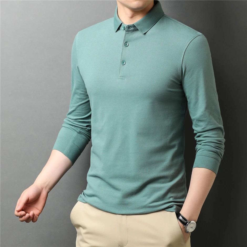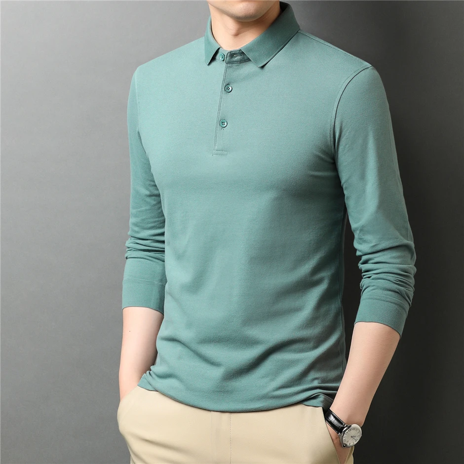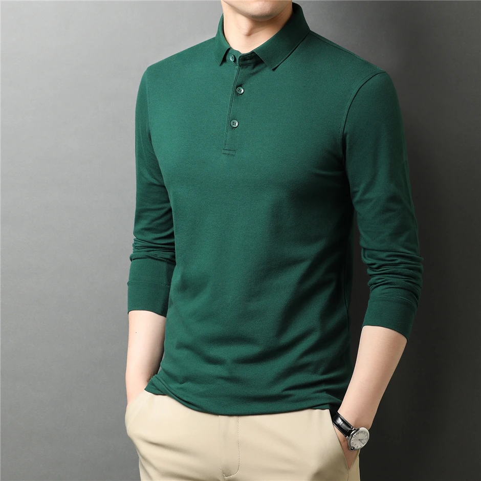 COODRONY Pure Color Long Sleeve Cotton Polo-Shirt Men Brand Clothing Spring Autumn Classic Business Casual T Shirts Homme Z5120