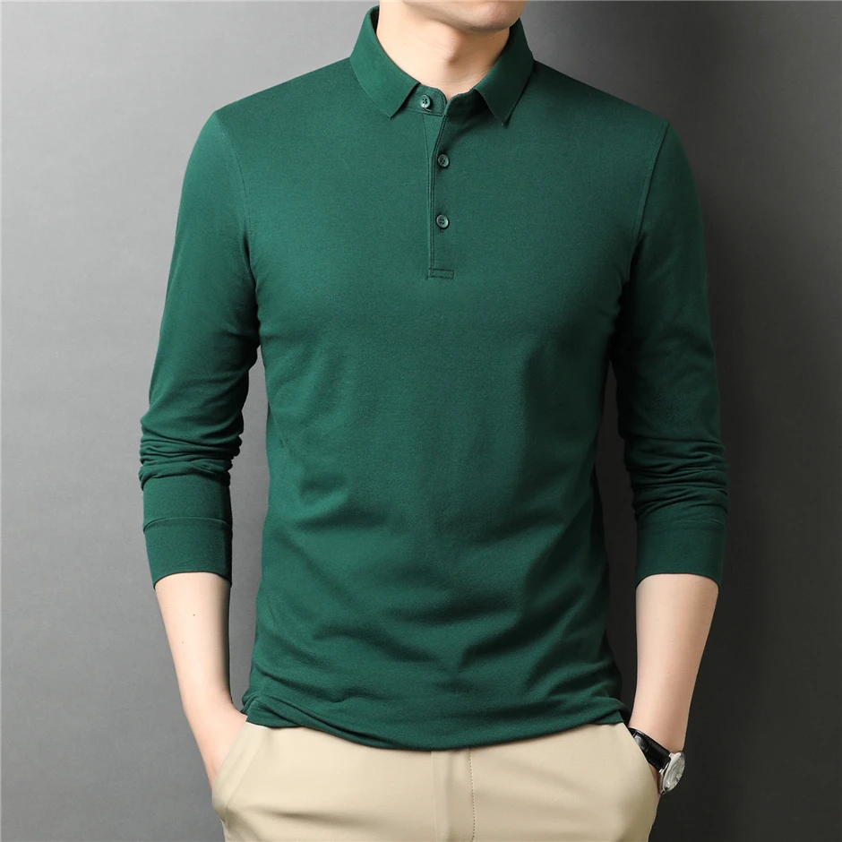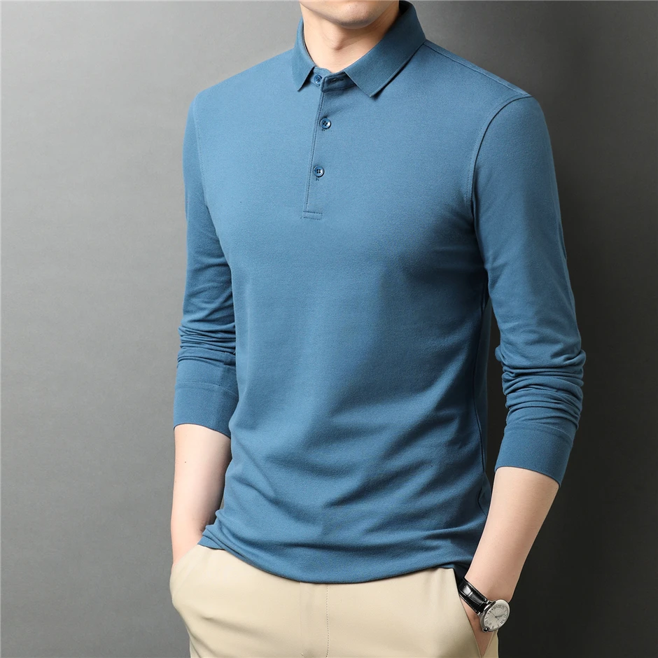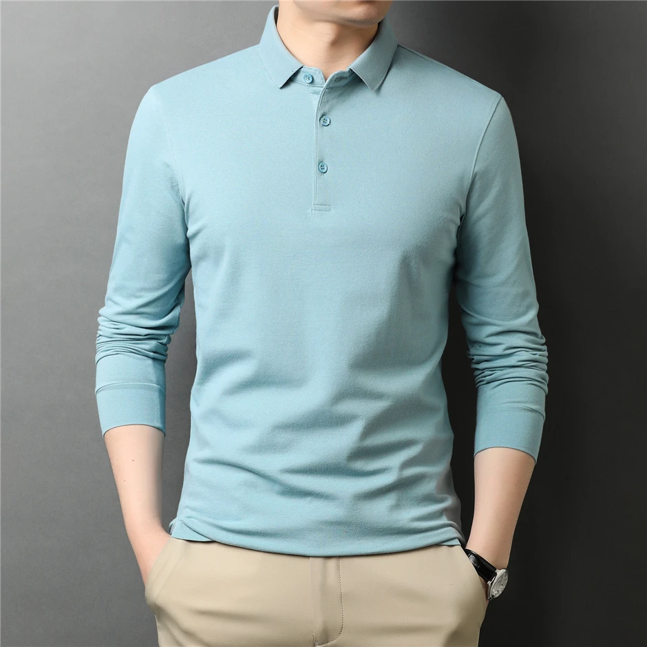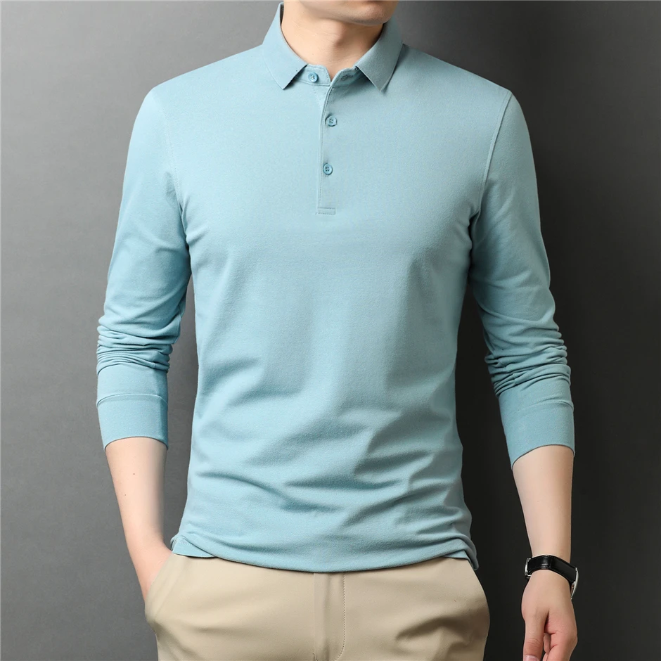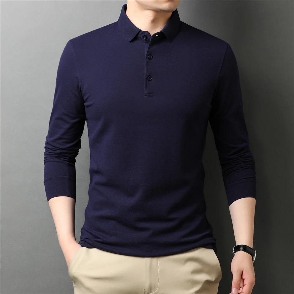 COODRONY Pure Color Long Sleeve Cotton Polo-Shirt Men Brand Clothing Spring Autumn Classic Business Casual T Shirts Homme Z5120