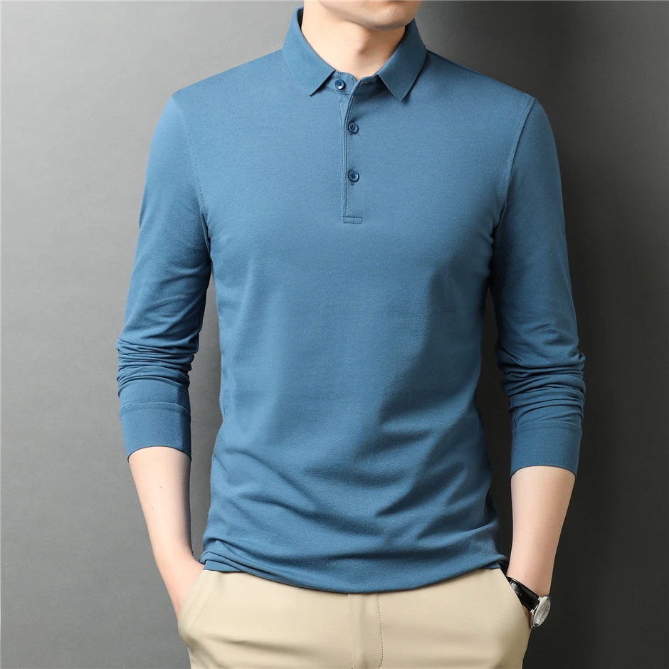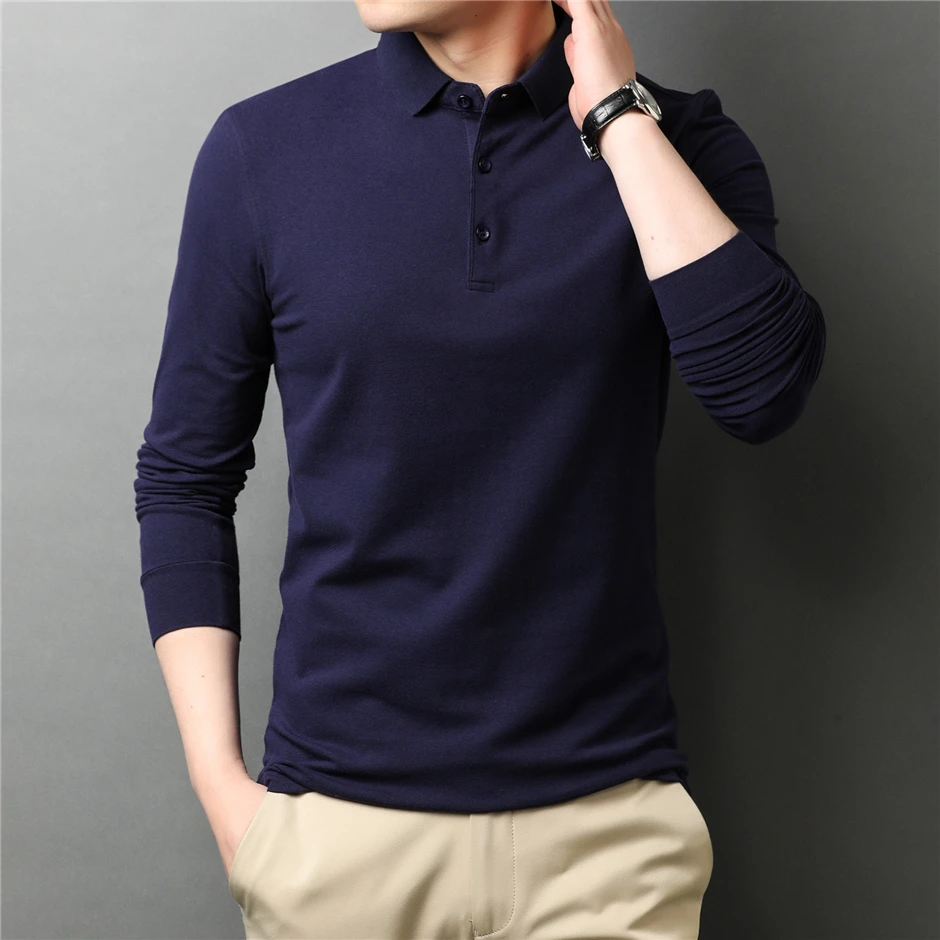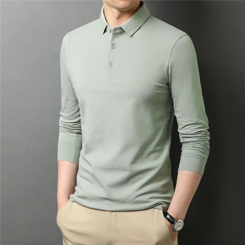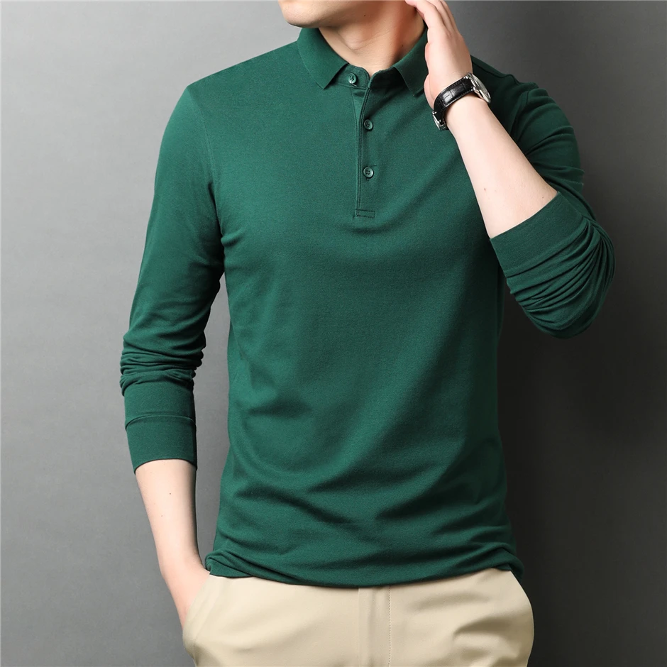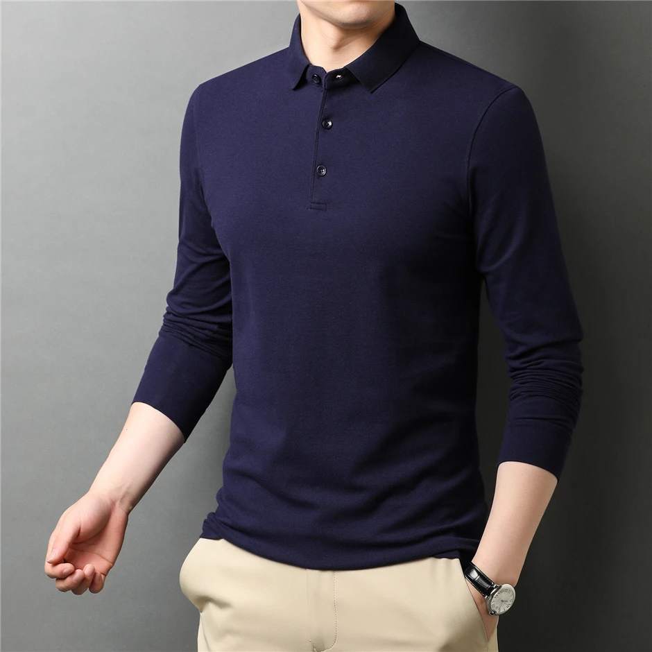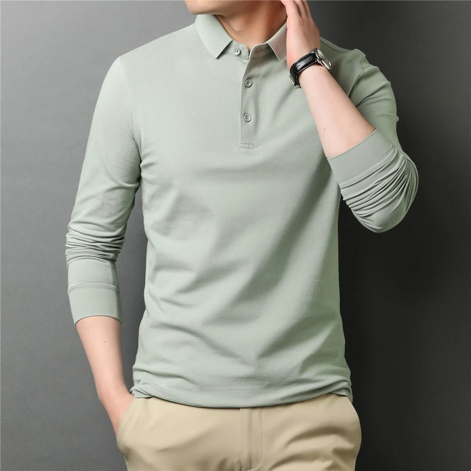 COODRONY Pure Color Long Sleeve Cotton Polo-Shirt Men Brand Clothing Spring Autumn Classic Business Casual T Shirts Homme Z5120