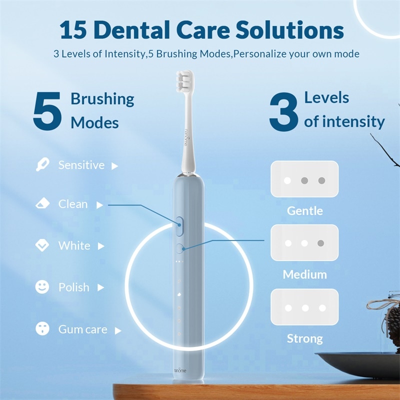3 Levels of Intensity,5 Brushing Modes,Personalize your own mode