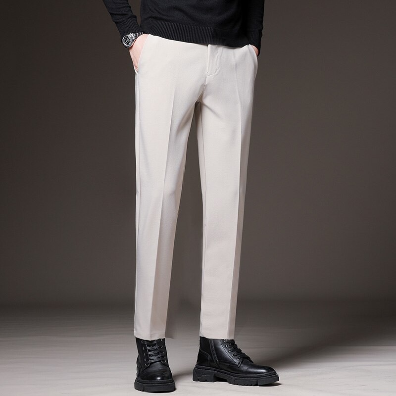 Spring Summer Men‘s Suit Pants Slim Business Office Elastic Waist Black Grey Classic Korean Trousers Male Plus Size 27-38 40 42