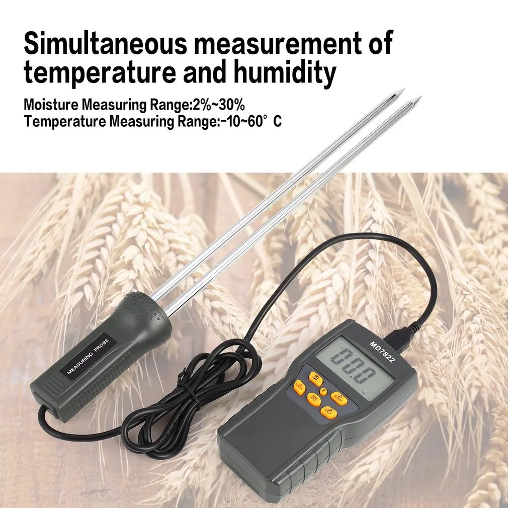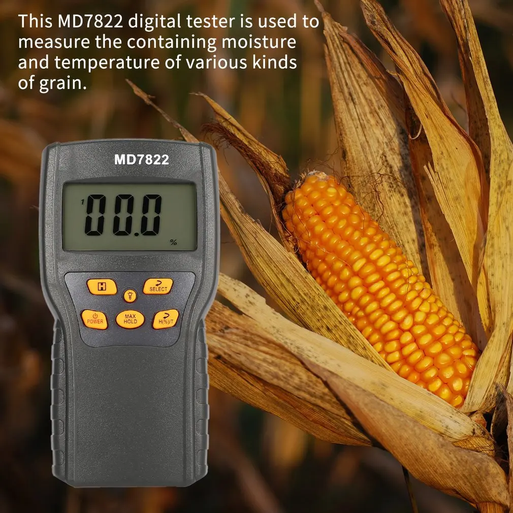 MD7822 Digital Grain Moisture Meter Analyzer LCD Thermometer Humidity Hygrometer Water Damp Detector Wheat Corn Rice Tester