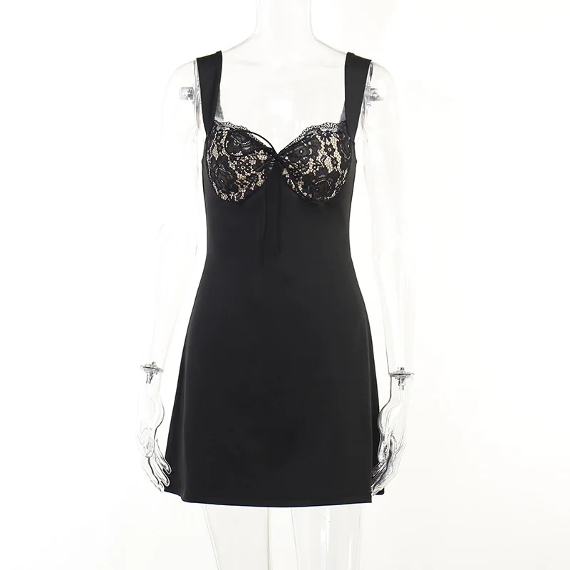 Townlike Lace Splicing Spaghetti Strap Sexy Club Party Dresses Women Summer Dress 2022 Backless Strapless Mini A-line Dress