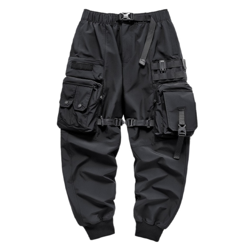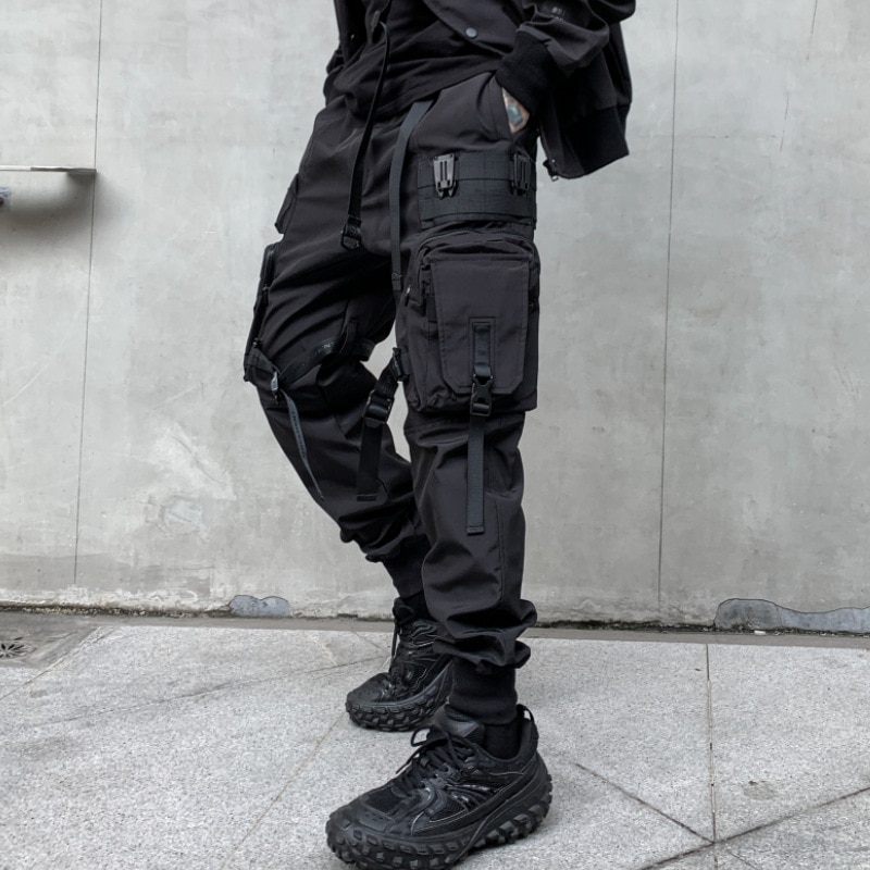 Multi-pockets Ribbons Bandage Tactical Techwear Cargo Pants Mens Harajuku Punk Hip Hop Joggers Pantalons Casual Streetwear