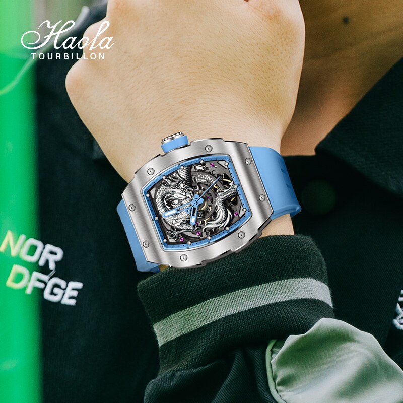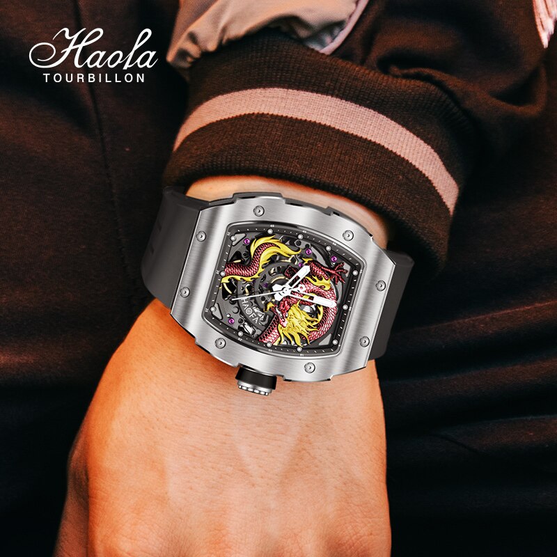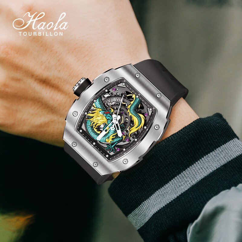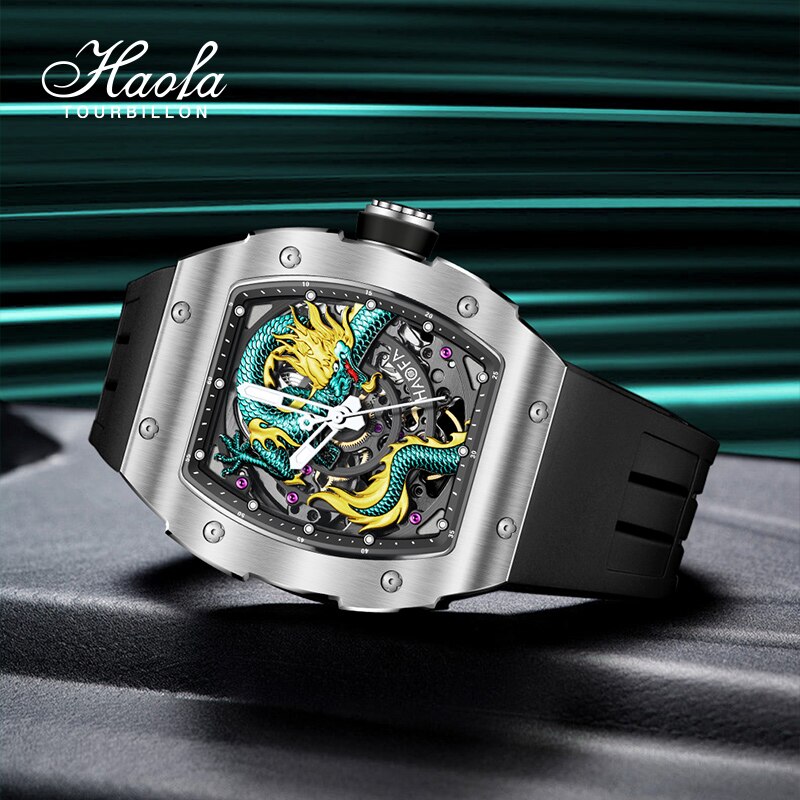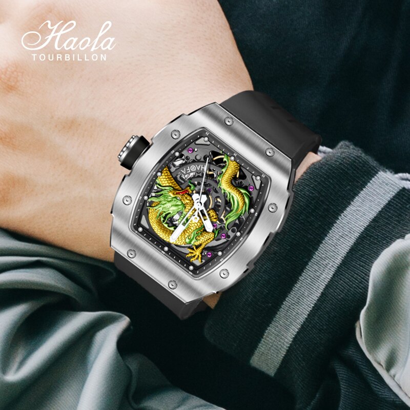Haofa 3D Dragon Automatic Watch For Men Sapphire Waterproof Self Winding Mechanical Mens Watch Luminous Luxury Stainless Steel