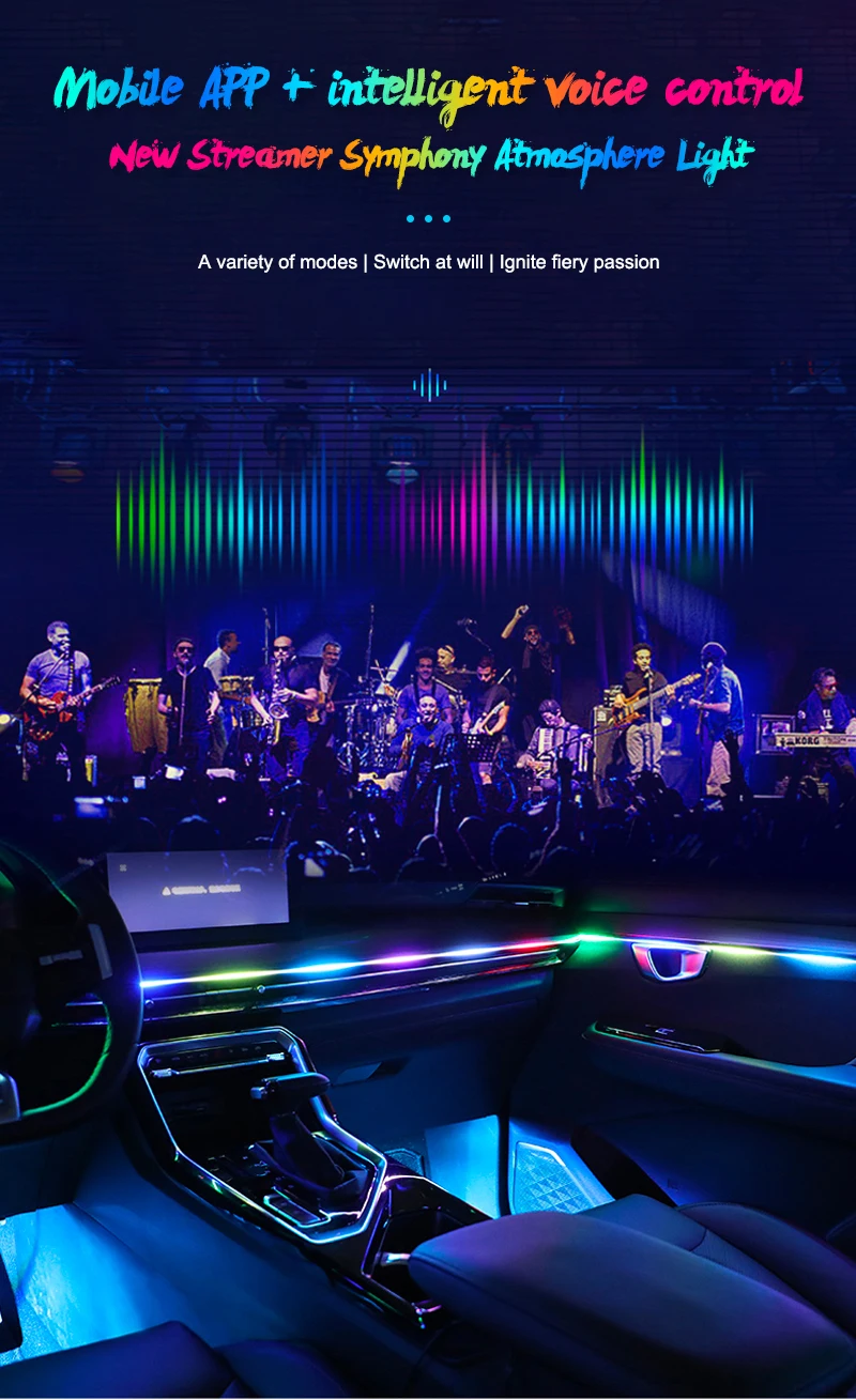 -Full Color Streamer or RGB color, decorate your car with different ambience