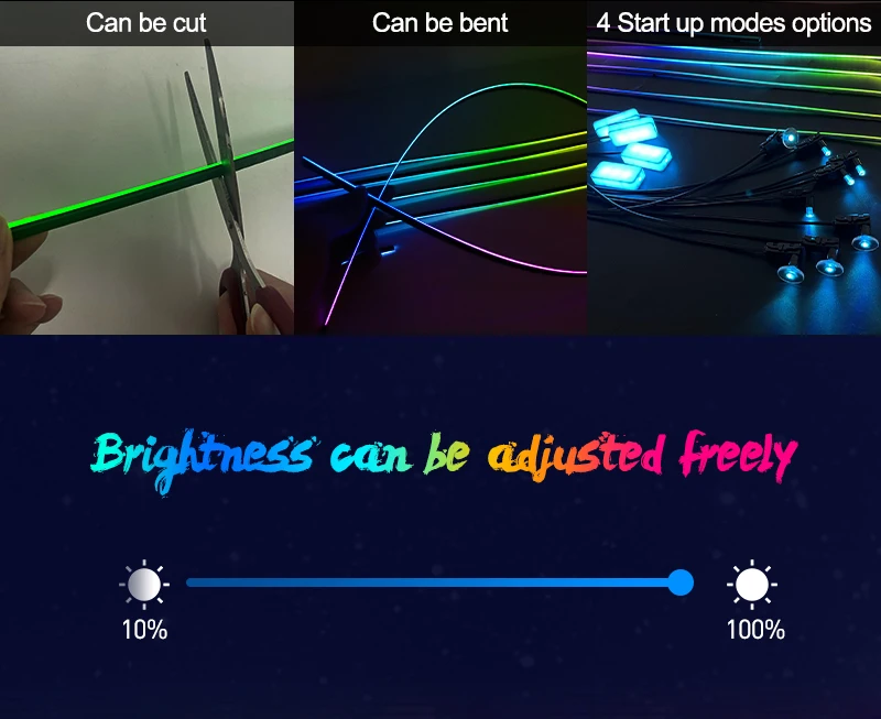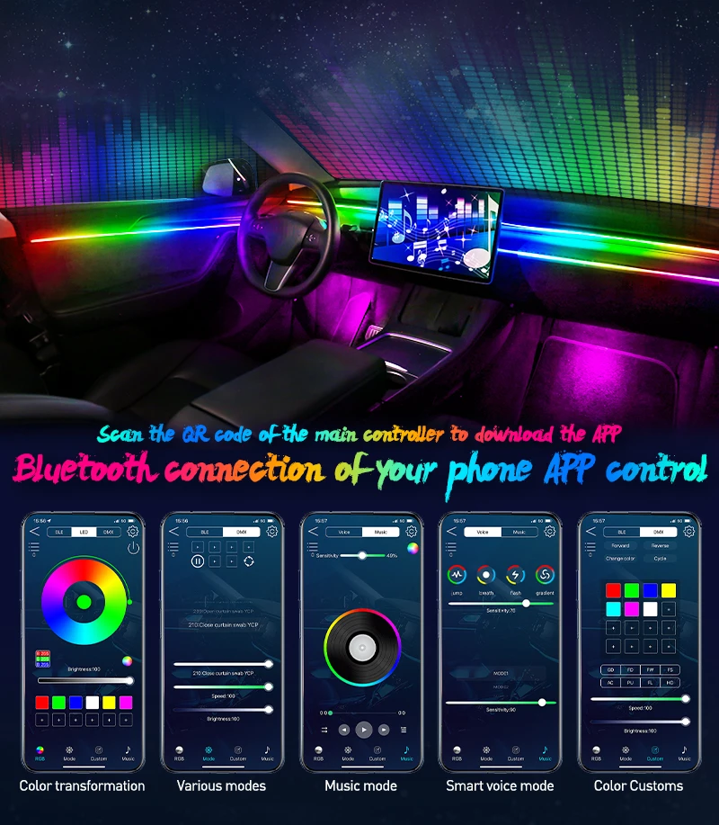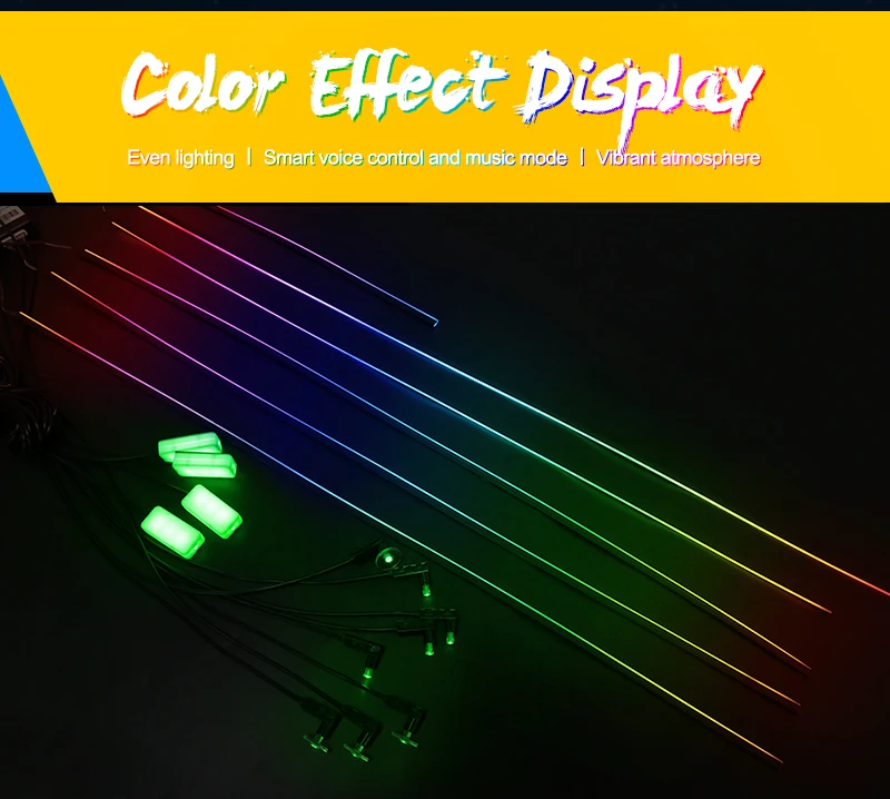 1) Active sound effects: The LED under the car's brightness system is equipped with sound sensors that allow the LED lights synchronized with musical rhythm. The LED light music strip follows the rhythm and adjusts the flicker to adapt to the strength of the sound.