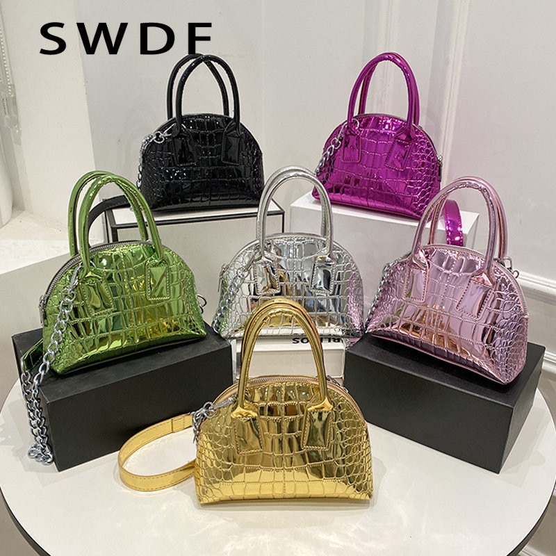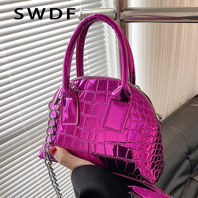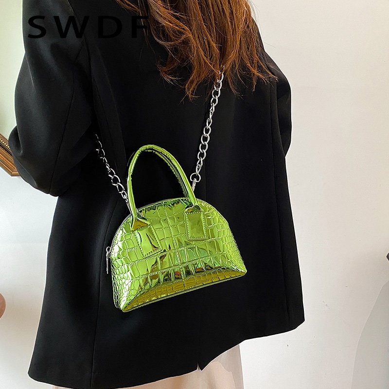 2023 Luxury Women Glossy Alligator Print Leather Party Tote Designer Green Chain Shoulder Bag Crossbody Bags Handbags and Purses