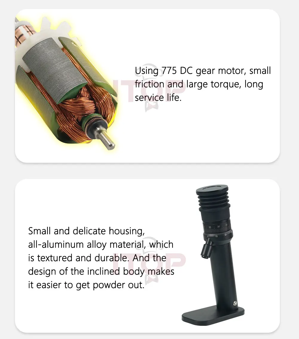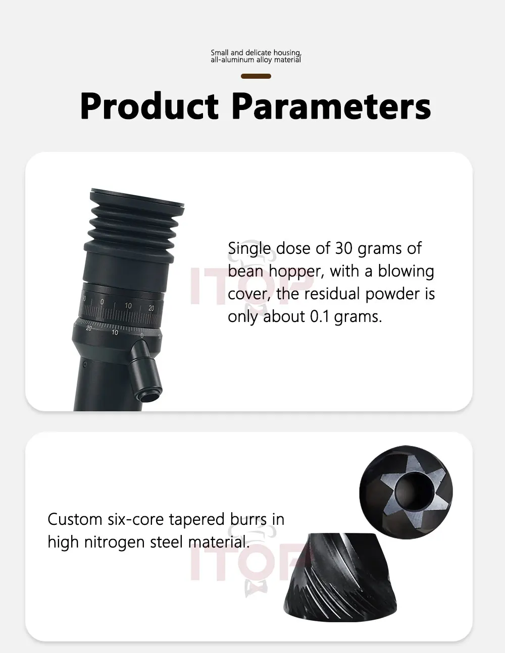 ❤ Single dose of 30 grams of bean hopper, with a blowing cover, the residual powder is only about 0.1 grams.