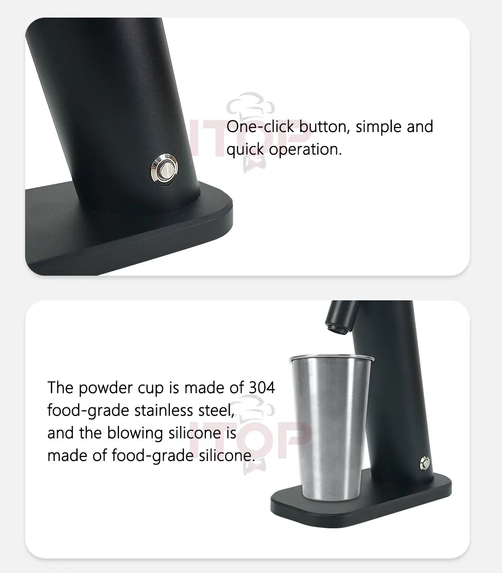 ❤ The powder cup is made of 304 food-grade stainless steel, and the blowing silicone is made of food-grade silicone.