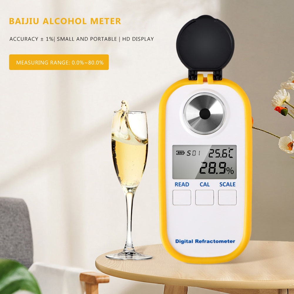 Portable Digital Wine Alcohol Meter Beer Refractometer Battery Powered 0-80 Degree LCD Display Brewing Alcohol Tester Measuring Tools