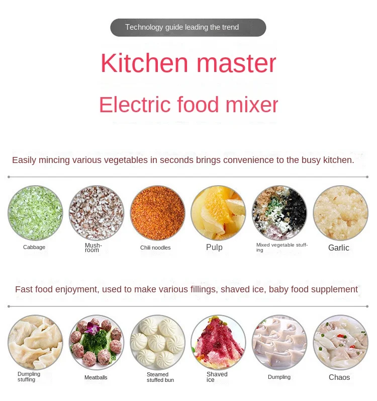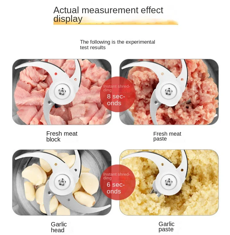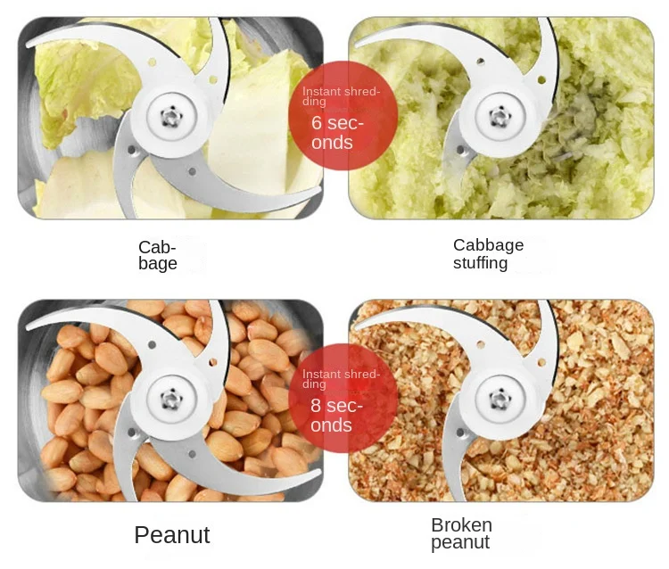 4. Connect the power supply. Press the switch. Chop the food according to the demand.