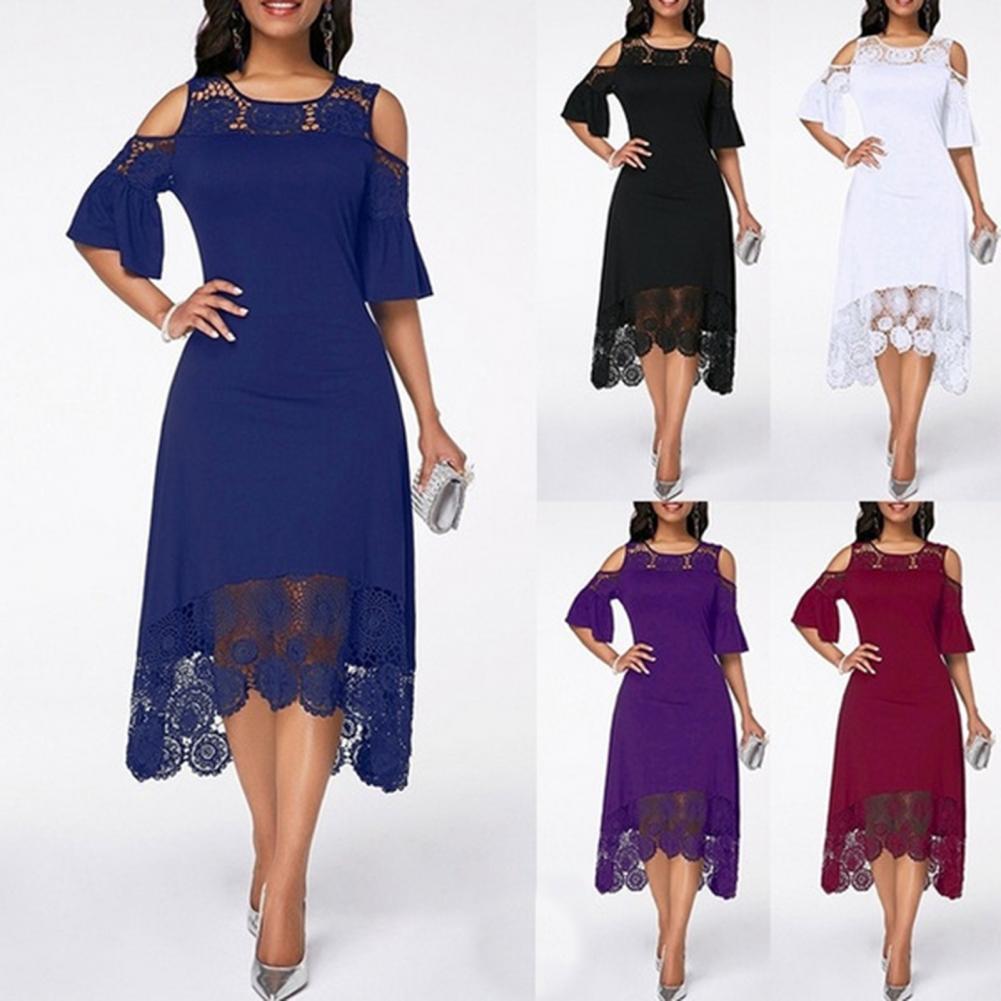 Lace patchwork design makes this formal dress see-through and more fashionable, and it allows you to be sexy and more attractive. Besides, the ruffles sleeve design is beautiful and provides you a beautiful and elegant appearance.