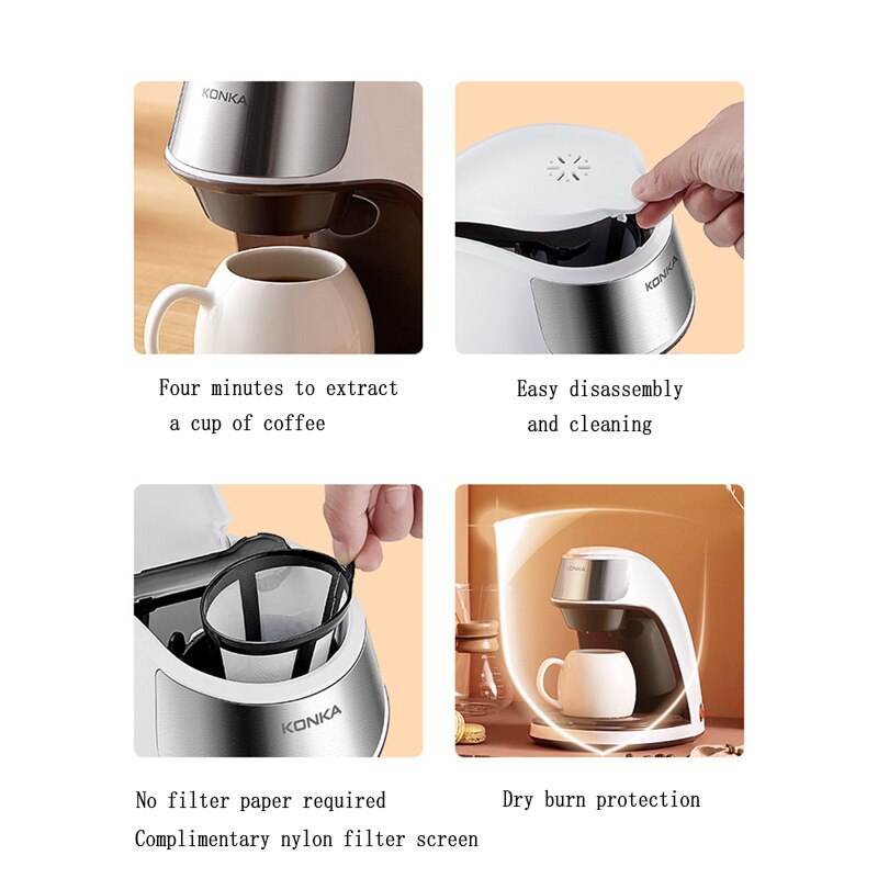 Drip Coffee Machine Portable Mini Coffee Maker 300ml Multifunction Tea Milk for Office Home