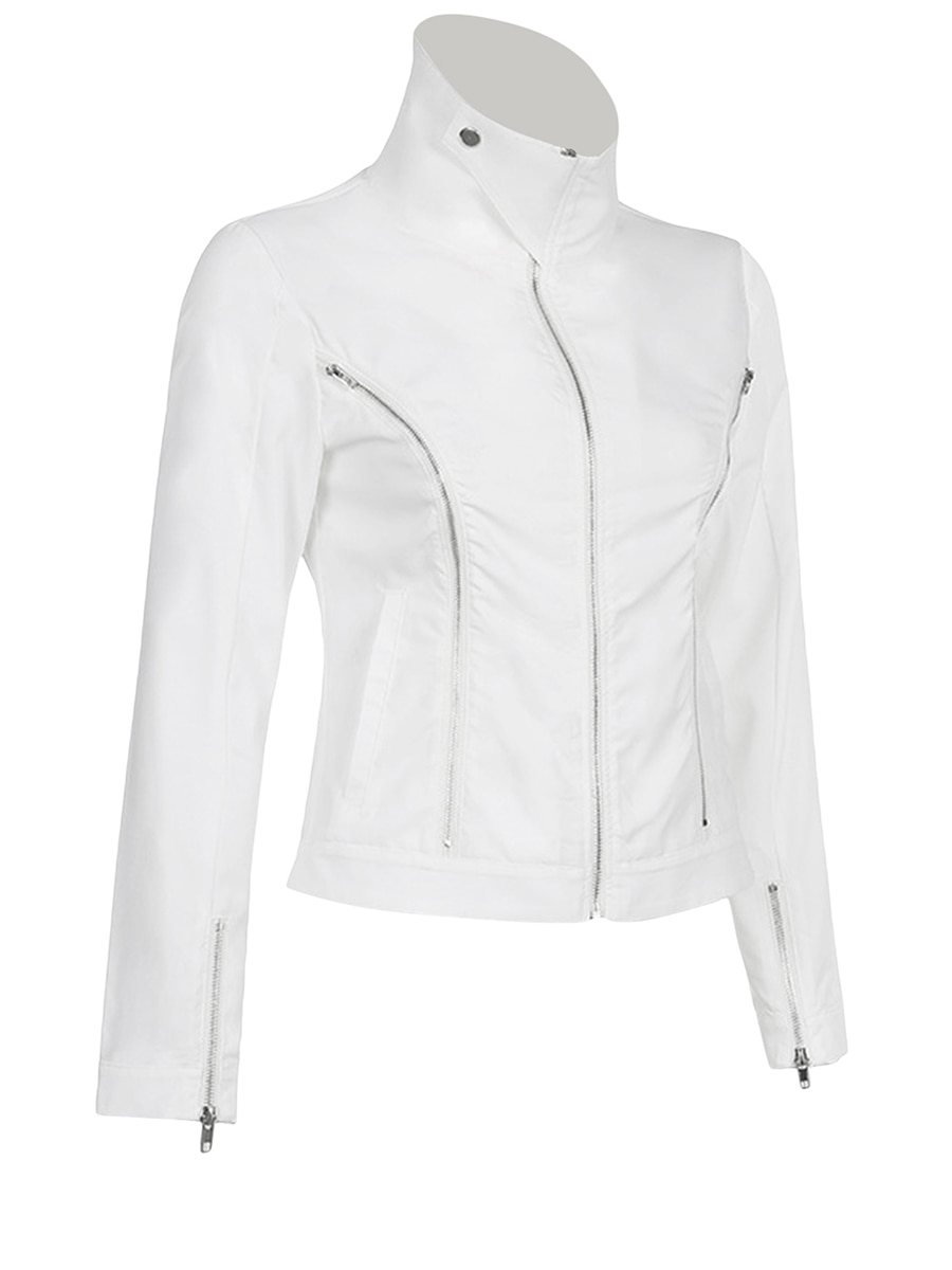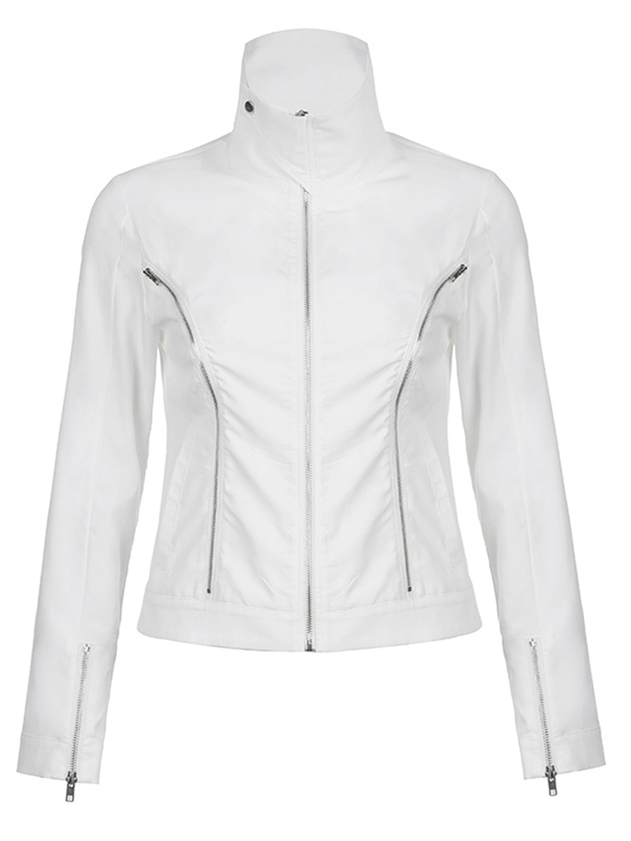 Women Casual Jacket, Long Sleeve Stand Collar Zipper Closure Solid Cool Fall Outwear