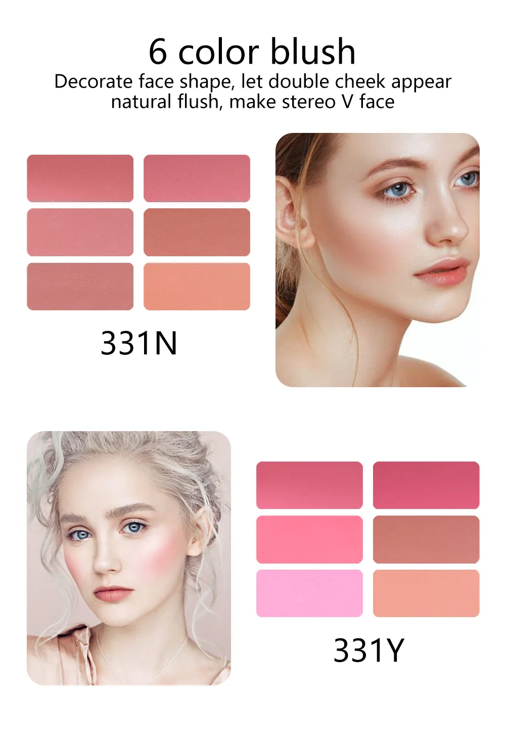 2. 6 colors blush. Decorate face shape, let double check appear natural flush, make stereo V face, keeping your cheeks clean and beautiful, and radiate natural beauty.