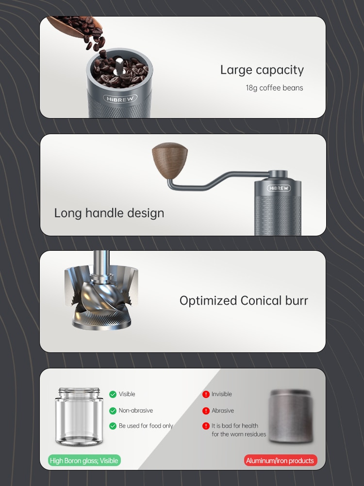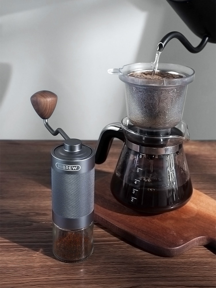 HiBREW Manual Coffee Grinder Portable High Quality Hand Grinder Mill Aluminium With Visual Bean Storage G4
