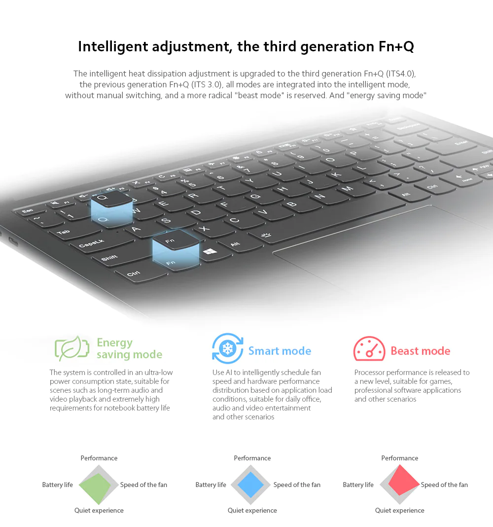 About 26W performance to using the Beast ModeCompared with 15W standard performance release,achieve stronger performanceIntelligent adjustment, the third generation Fn+Q