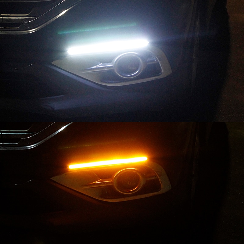 2x Car DRL LED Daytime Running Light Flow Yellow Turn Signal White DRLScan Waterproof Headlight Strip Sequential Light Universal