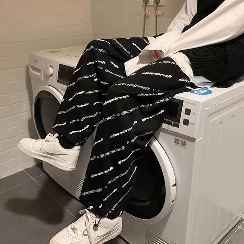 Streetwear Wide Oversize Pants Men Harajuku Casual Sport Sweatpants Joggers Skateboard Pants Letter Ankle Length Trousers